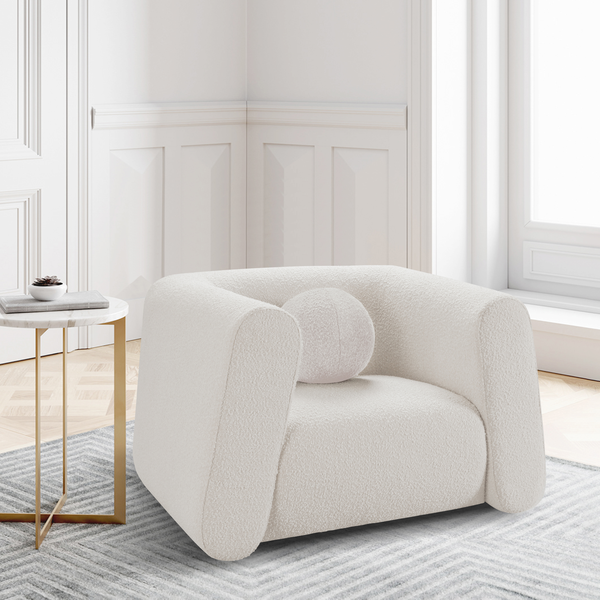 Abbington Cream Boucle Fabric Chair Meridian Furniture 113CREAM-C