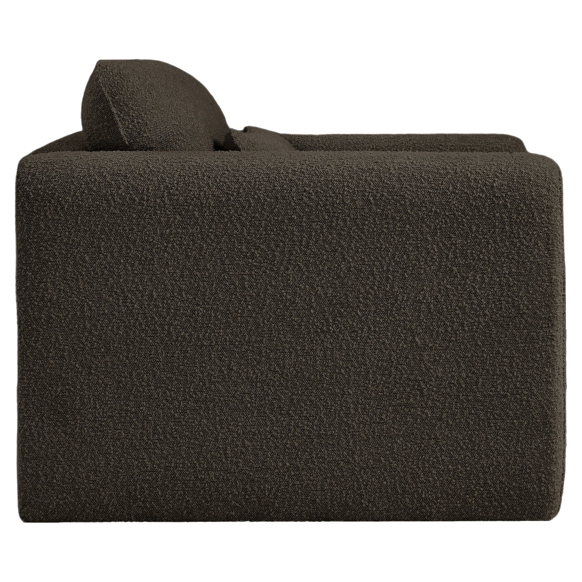 Thickly padded seat and back cushions cradle your body in supportive comfort while the rich boucle fabric caresses the skin and leaves you feeling relax and recharged.