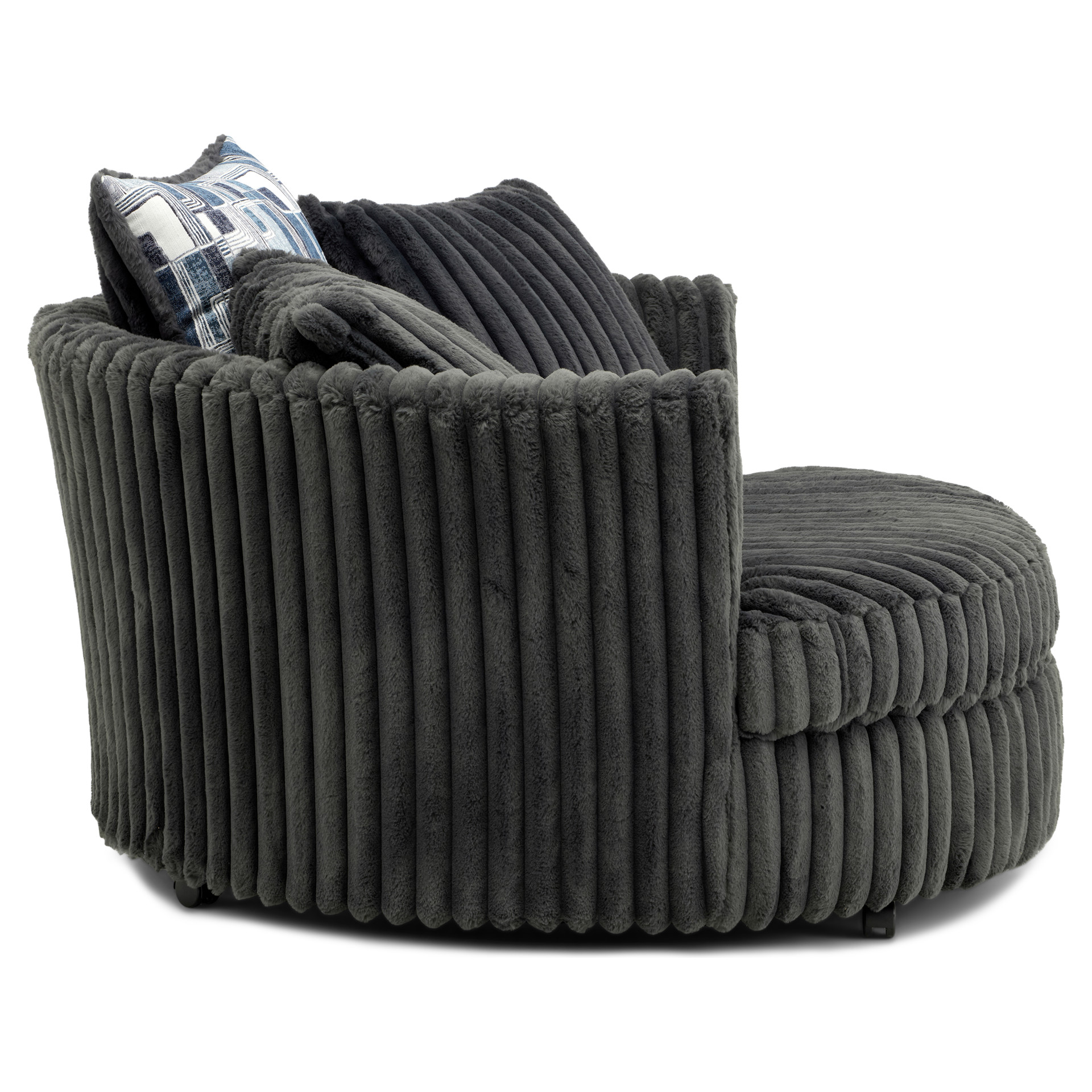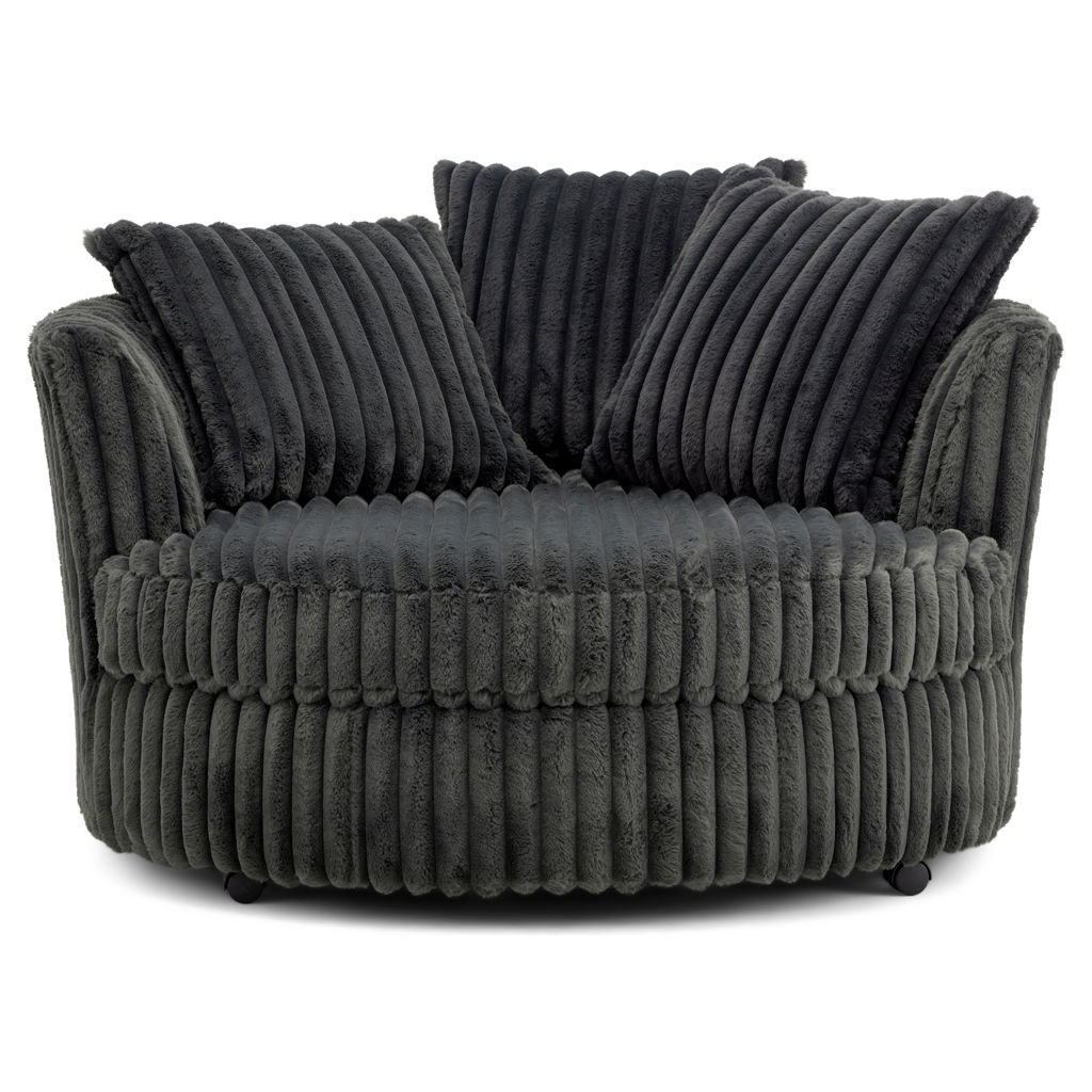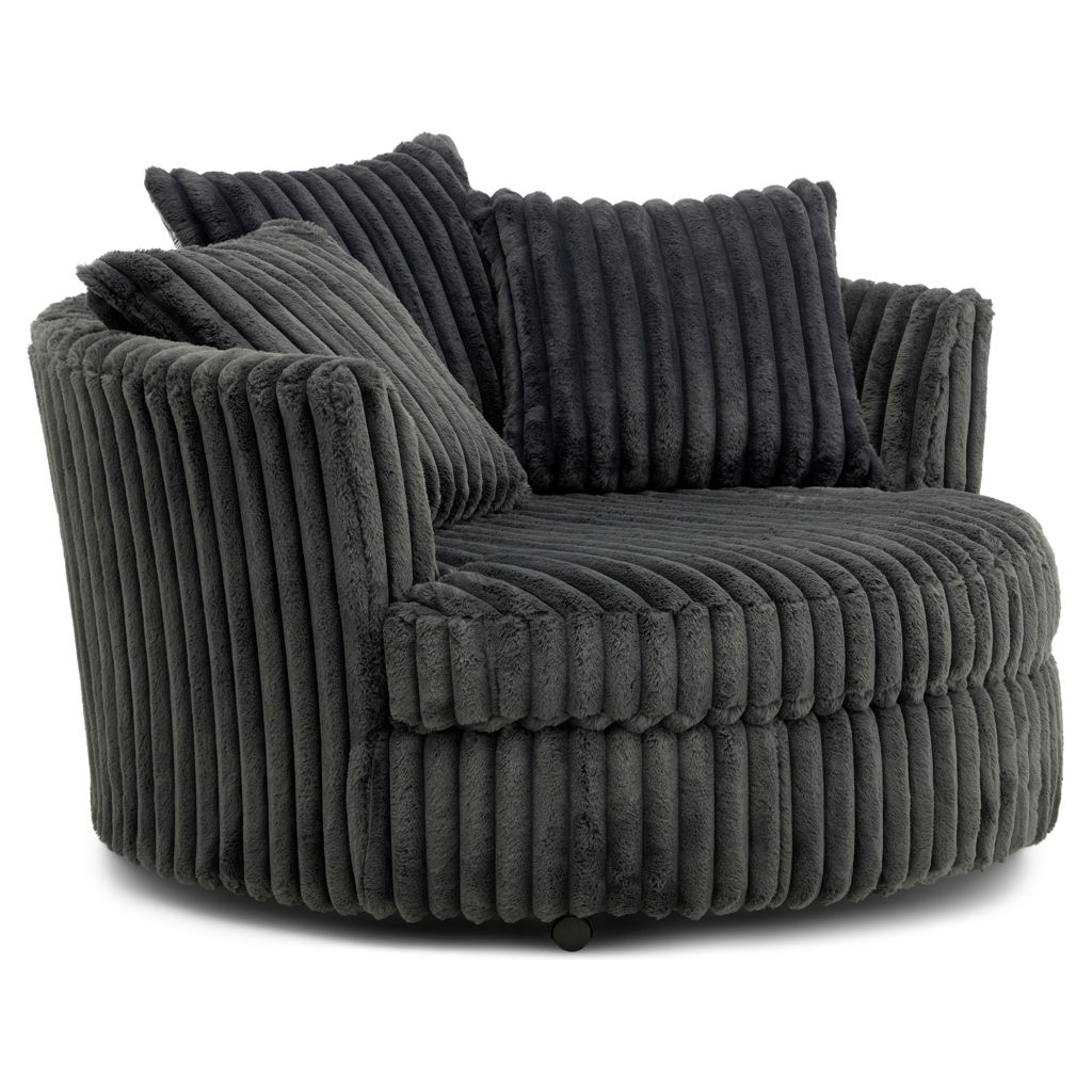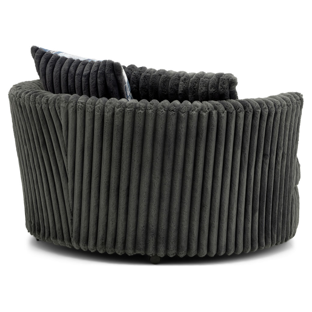 Transform your space with this bold and inviting swivel accent chair. Upholstered in ultra-soft corduroy fabric, it offers a cozy feel, while its unique rounded shape adds a modern touch to any room.