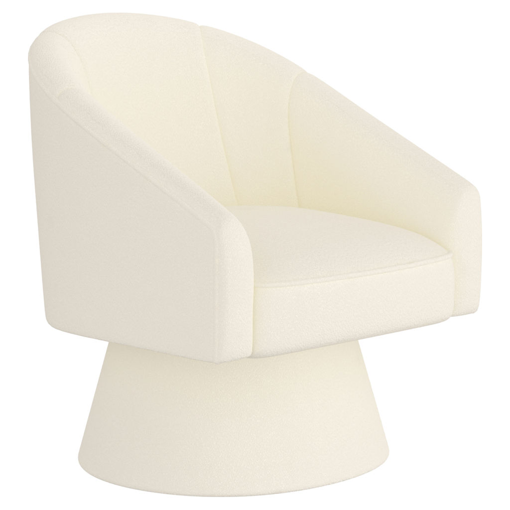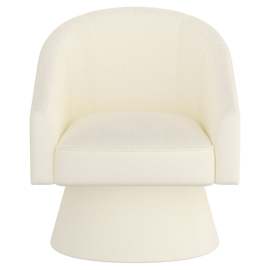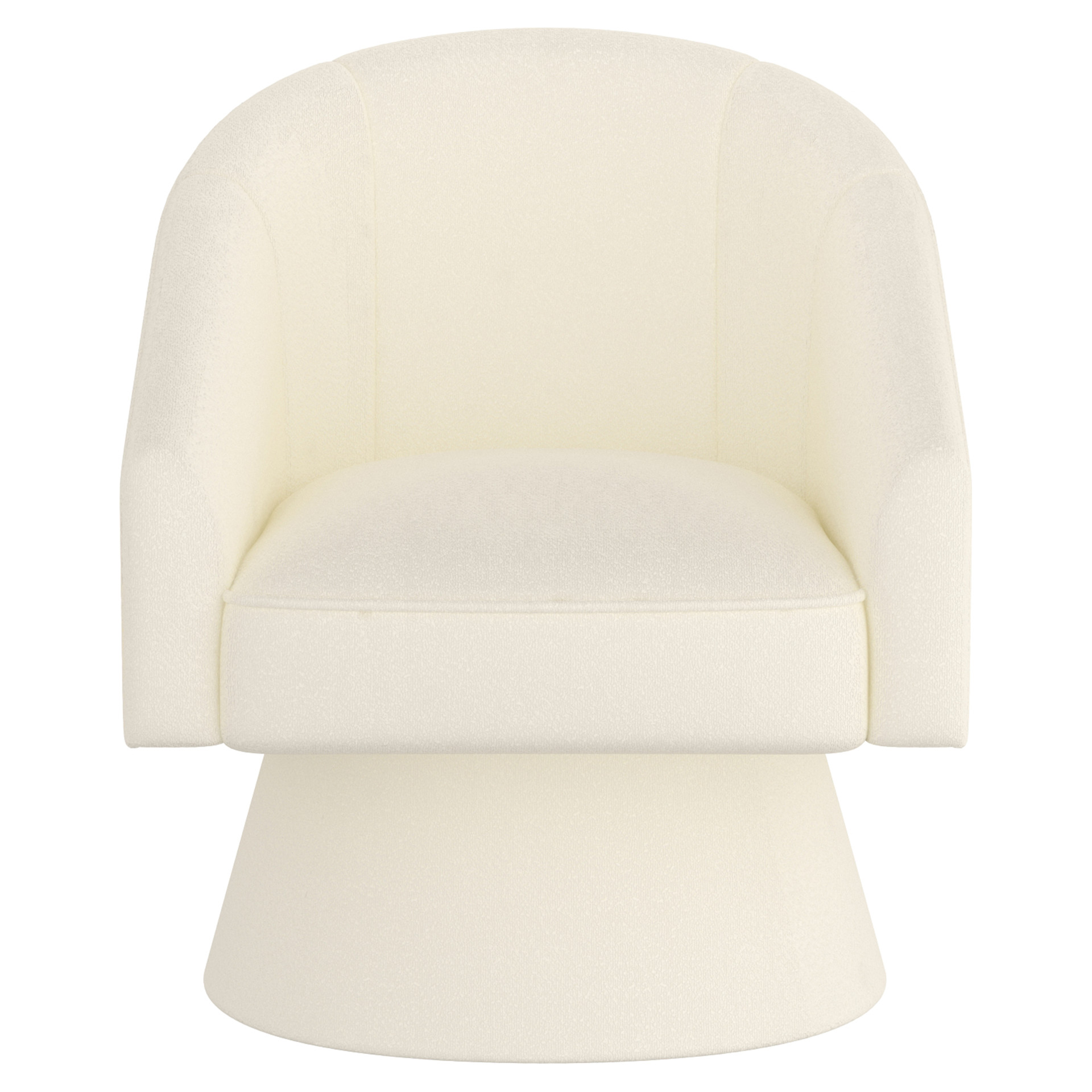 This beautiful swivel accent chair will envelope you in comfort. Every element, from the bucket seat to the textured boucle fabric, will come together seamlessly in this perfect little seat. Great in living rooms, bedrooms, or get creative a place as a dining chair in a formal living space.