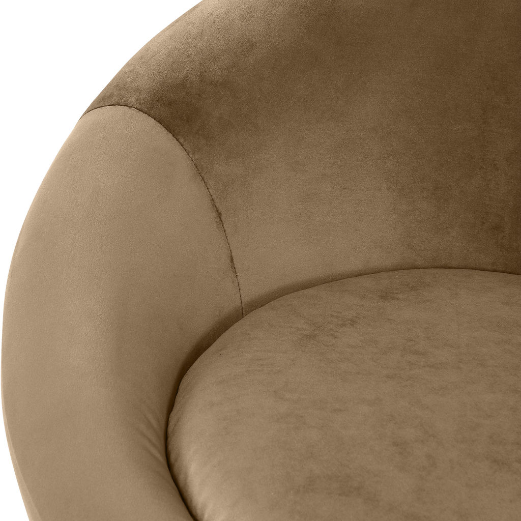 The Tristan chair instantly elevates your space with its distinctive sculptural silhouette. Its cocoon-like, enveloping design invites relaxation, while the velvety fabric in a beautiful beige tone blends effortlessly with any contemporary décor.