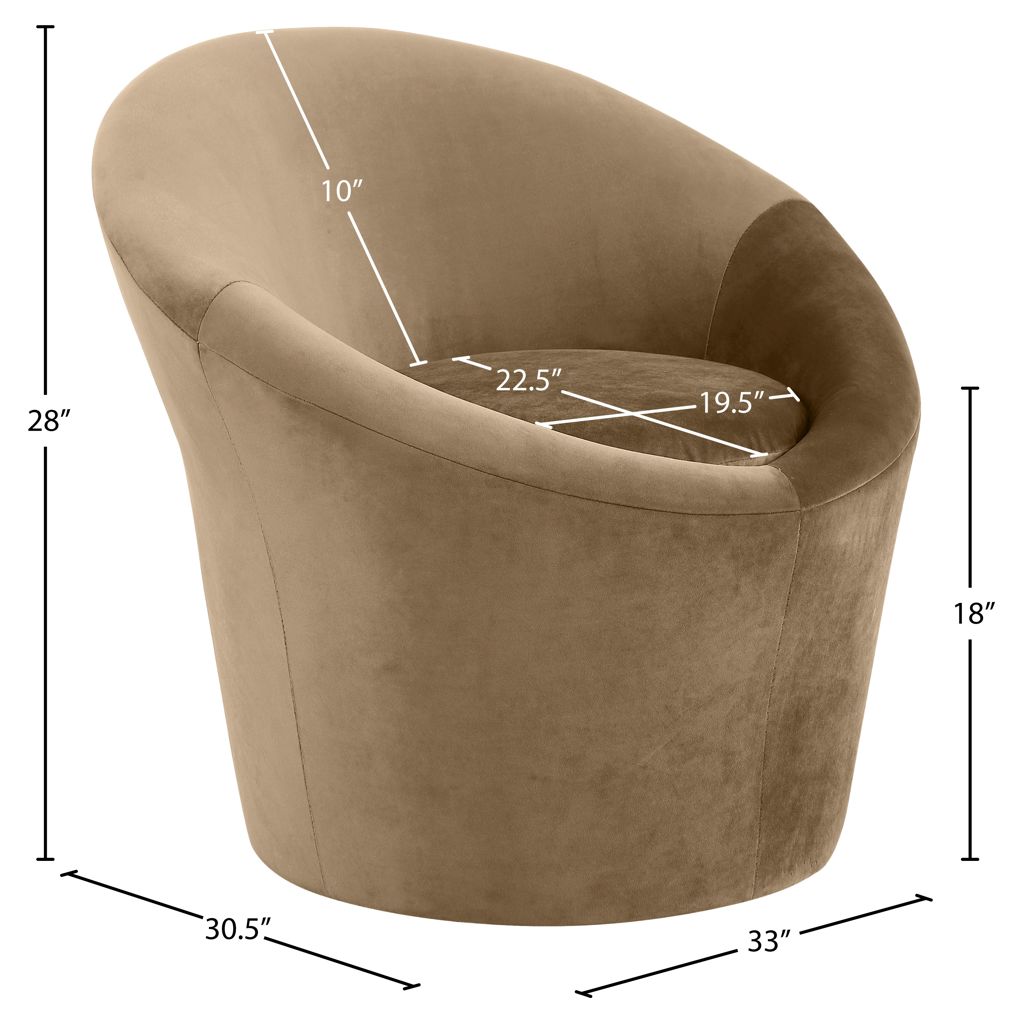 Compact yet generously sized, this accent chair fits perfectly in a living room, bedroom, or office. Its soft curved lines and rounded base create a sophisticated focal point that draws the eye without overwhelming the space.
