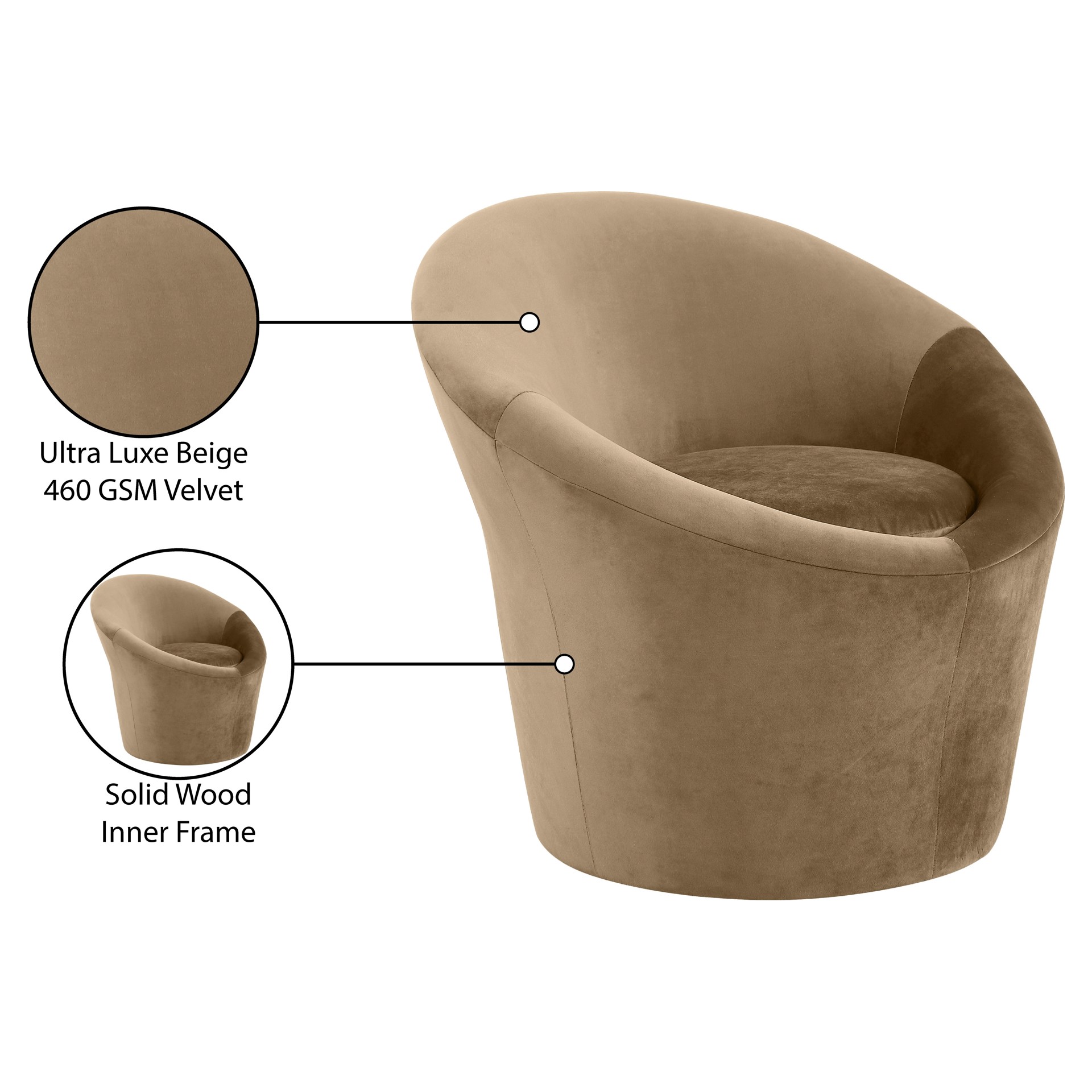 Tristan Velvet Accent Chair Meridian Furniture 33015BEIGE