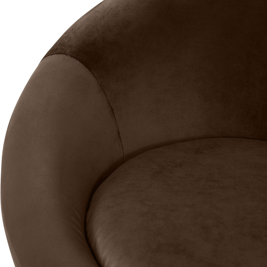 The Tristan chair instantly transforms your space with its distinctive sculptural silhouette. Its cocoon-like, enveloping design invites relaxation, while the velvety fabric in a stunning brown tone pairs beautifully with any contemporary décor.
