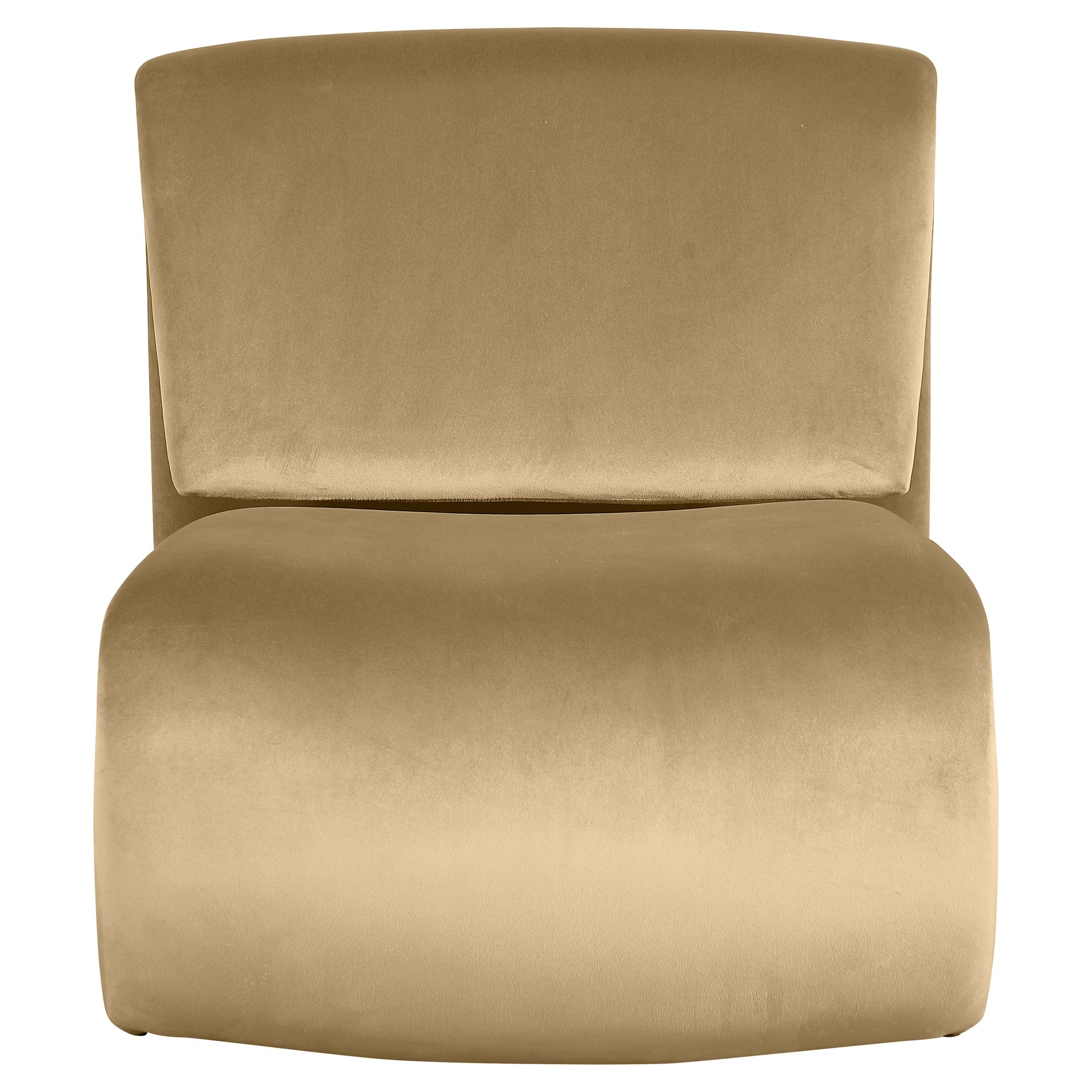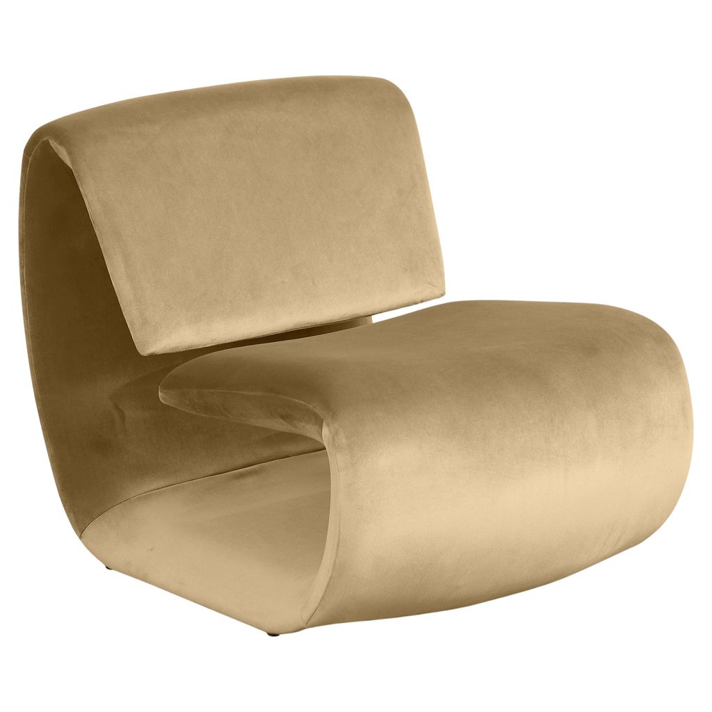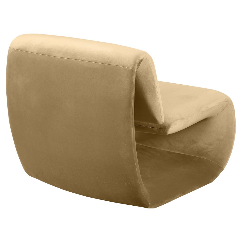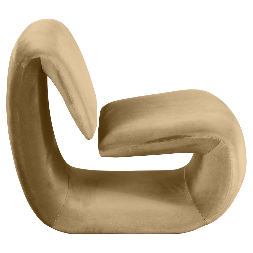 The playful Nouveau camel velvet accent chair is a unique piece that will spark conversation.