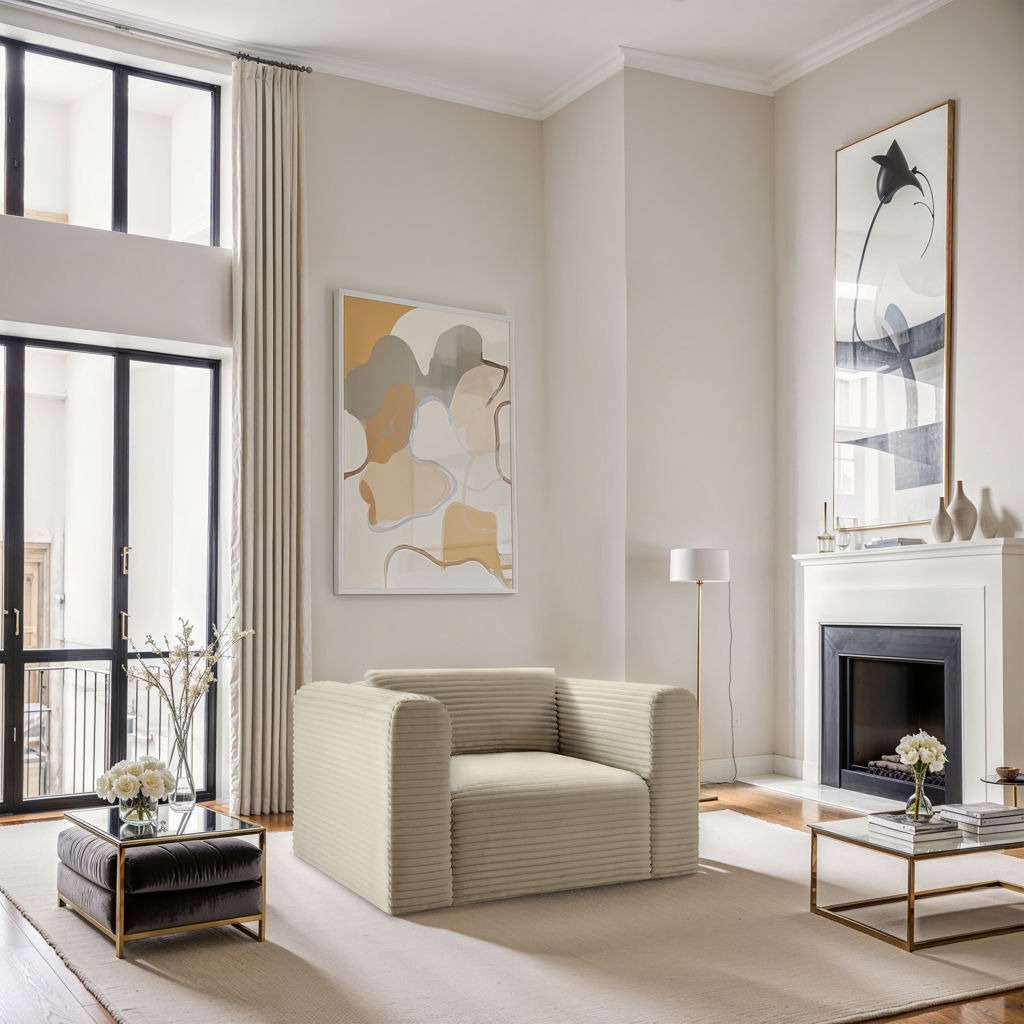 Indulge in the charm of the Shaggy armchair in corduroy fabric by Meridian Furniture. Its captivating design and luxurious corduroy finish elevate any space with effortless elegance.