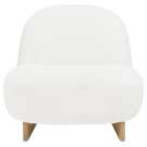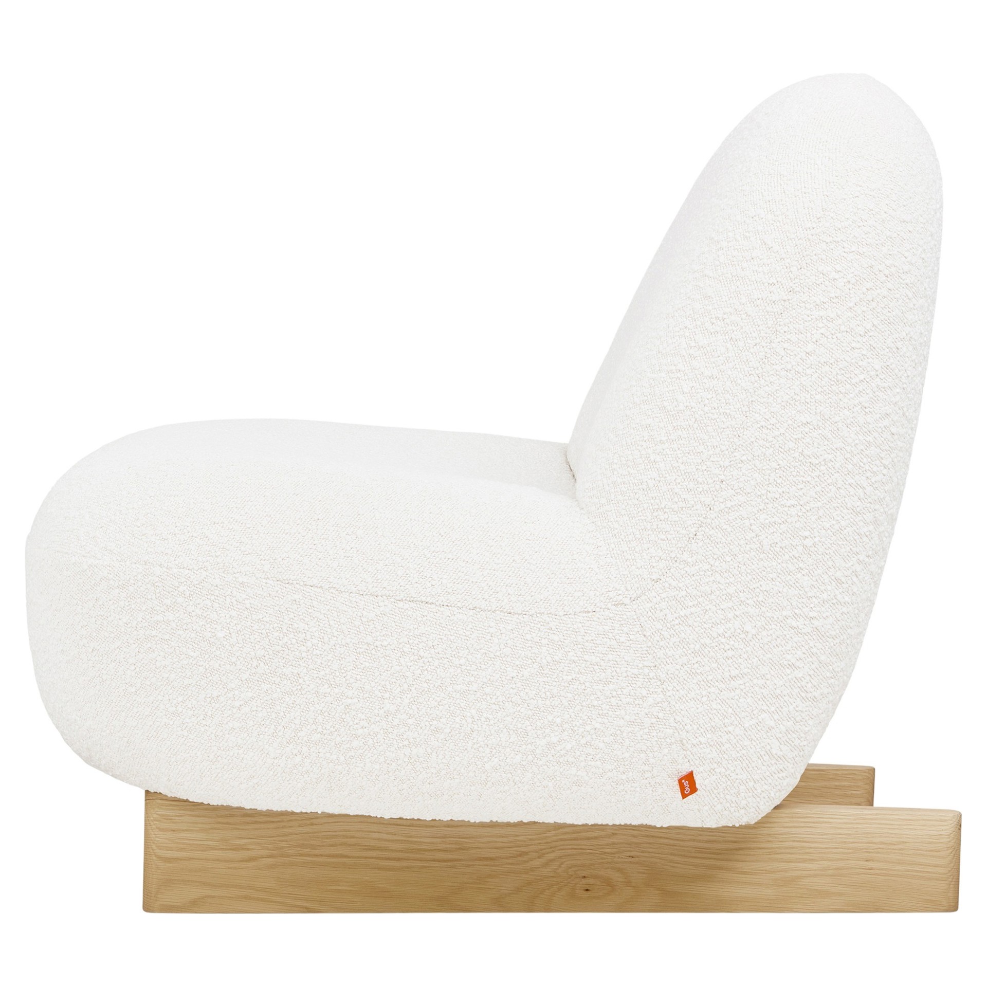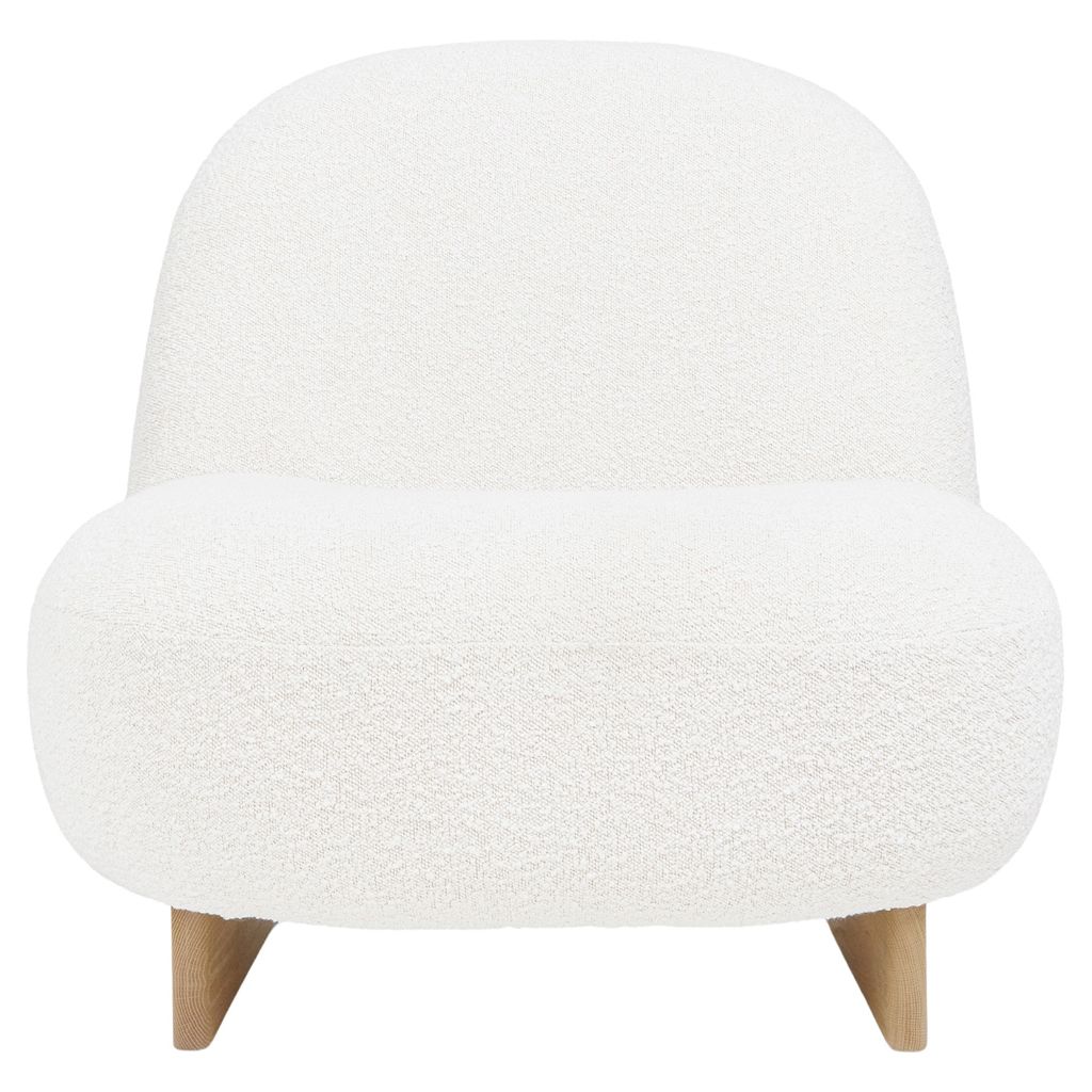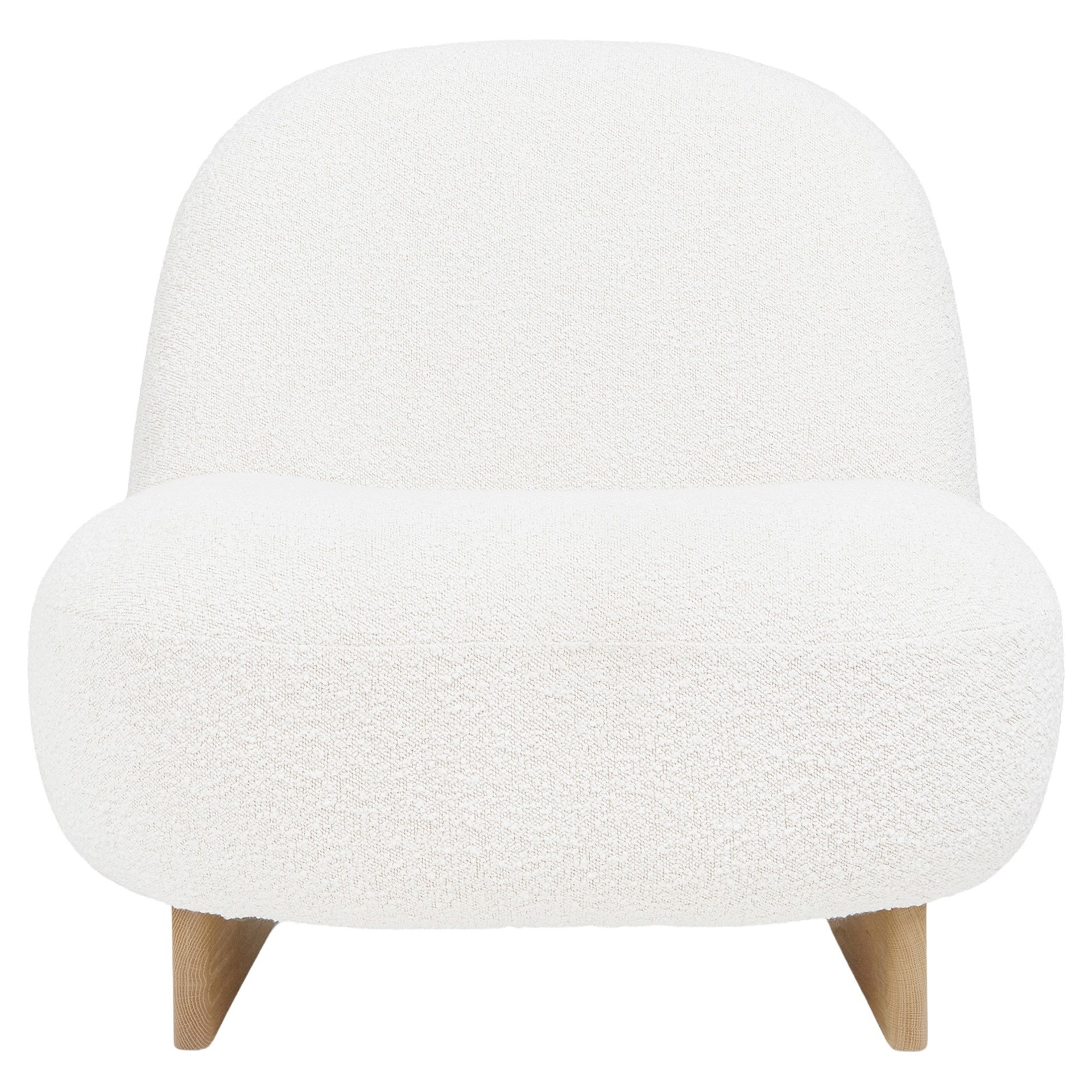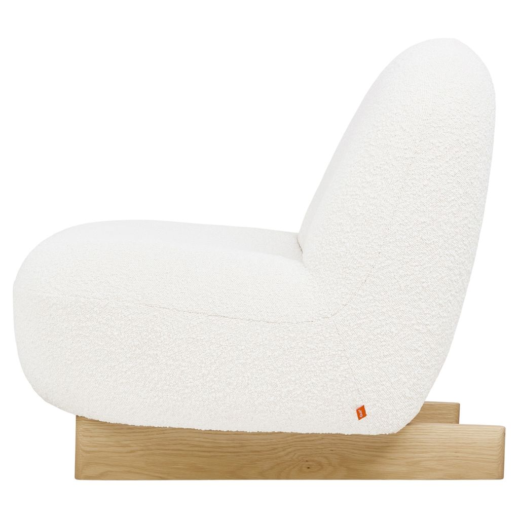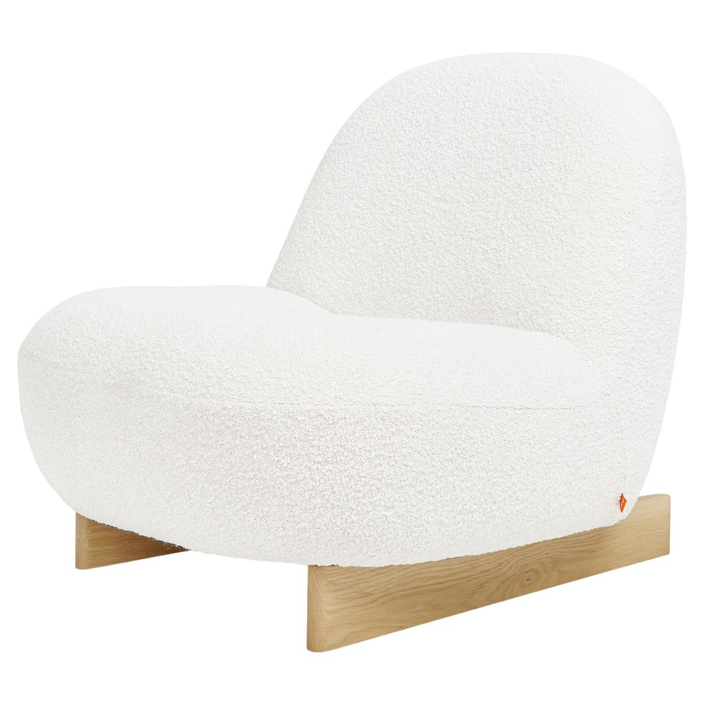 Upholstered in a nubby bouclé fabric and set on a solid oak sled base, this playful piece brings Scandinavian sophistication and sculptural curves to your space, all in a compact scale perfect for styling in your living room, bedroom, and beyond.