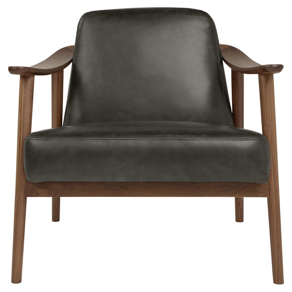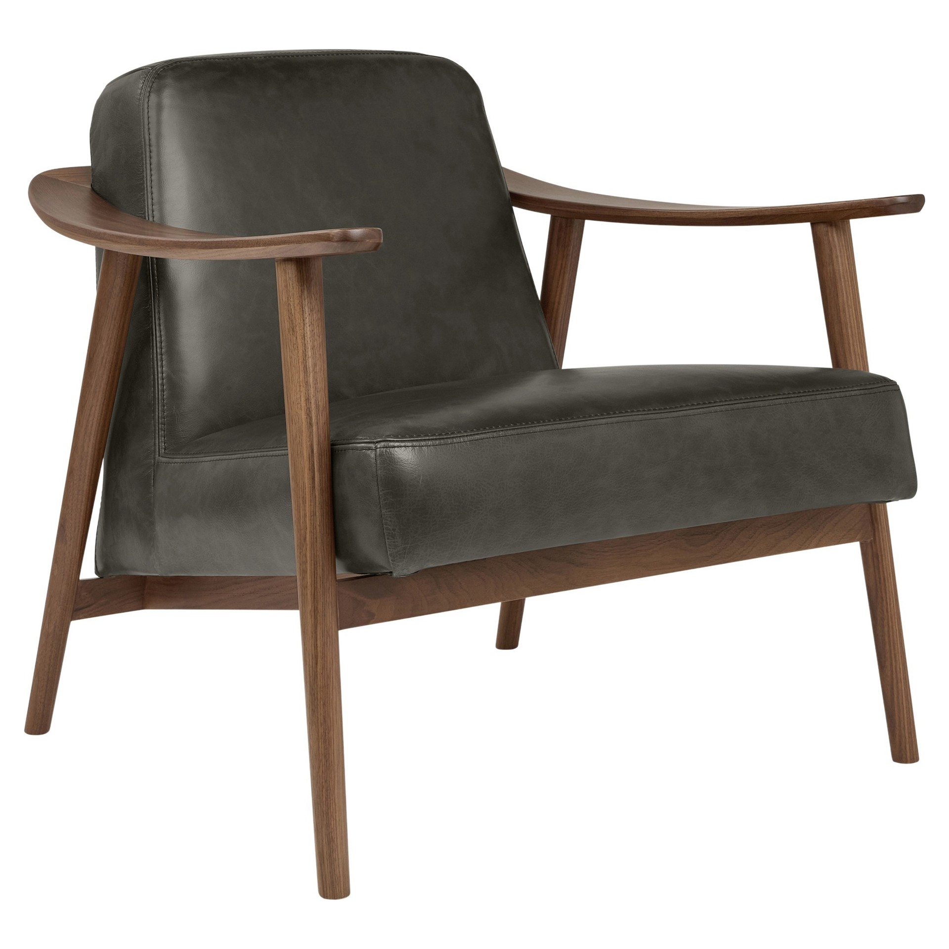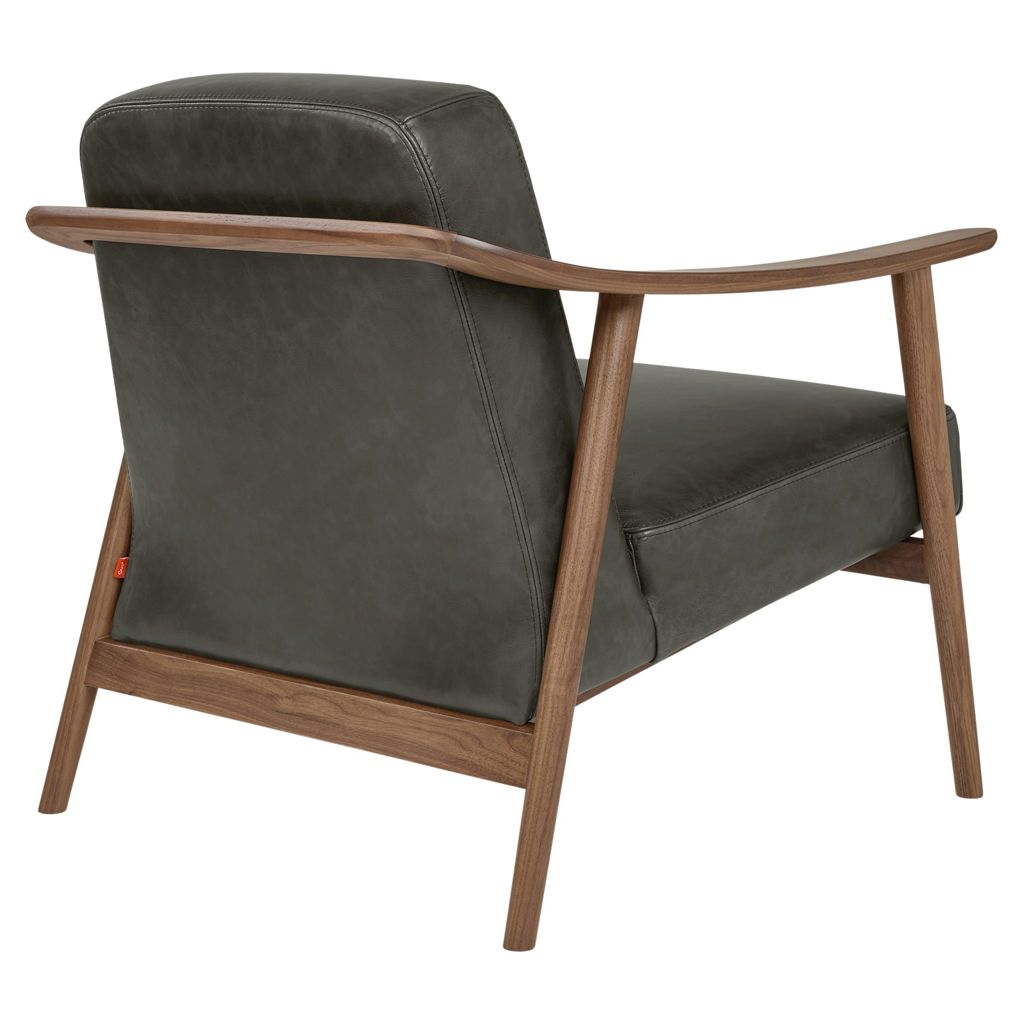 • The solid wood frame with custom curved armrests and mortise-and-tenon joints is crafted in walnut or ash.