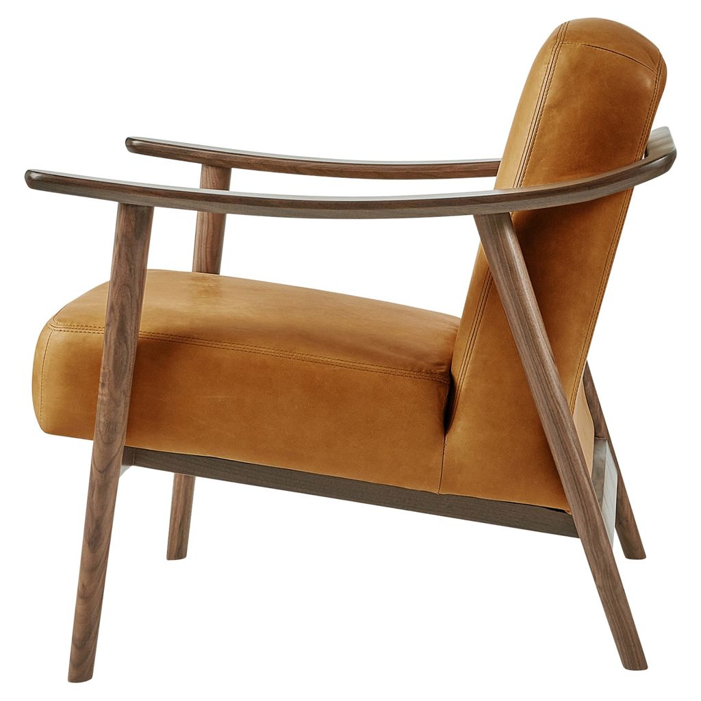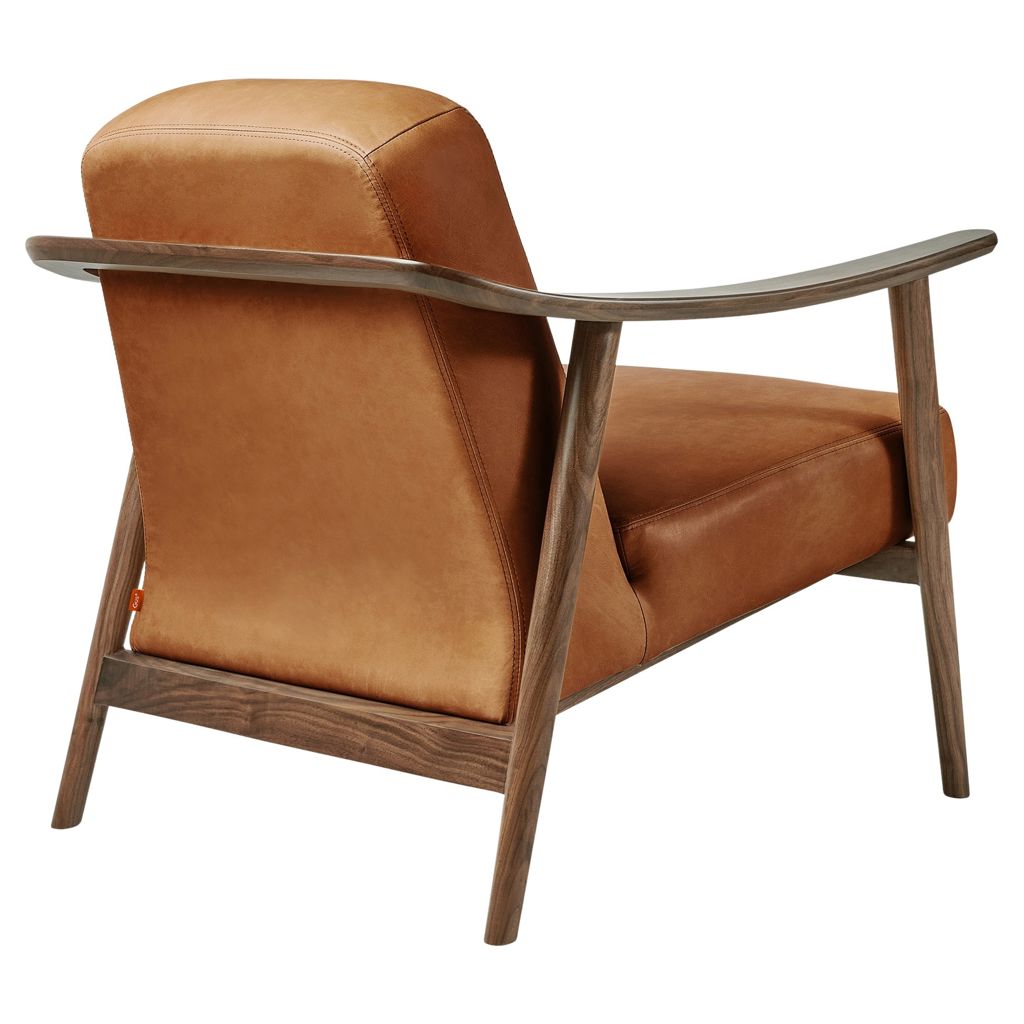 • The solid wood frame with custom curved armrests and mortise-and-tenon joints is crafted in walnut or ash.