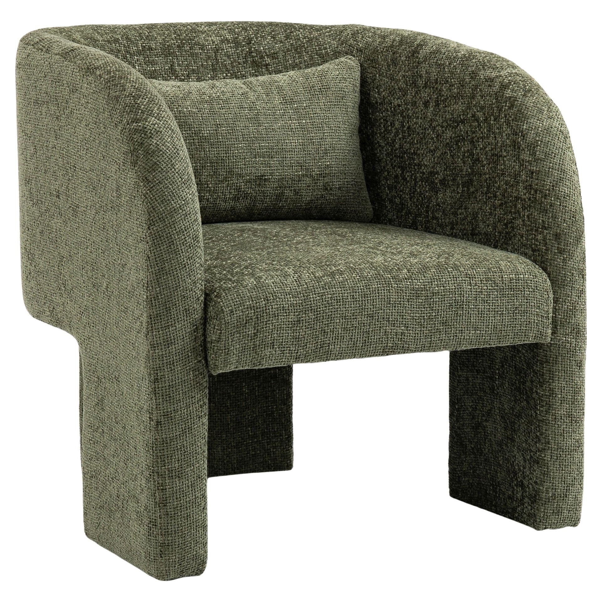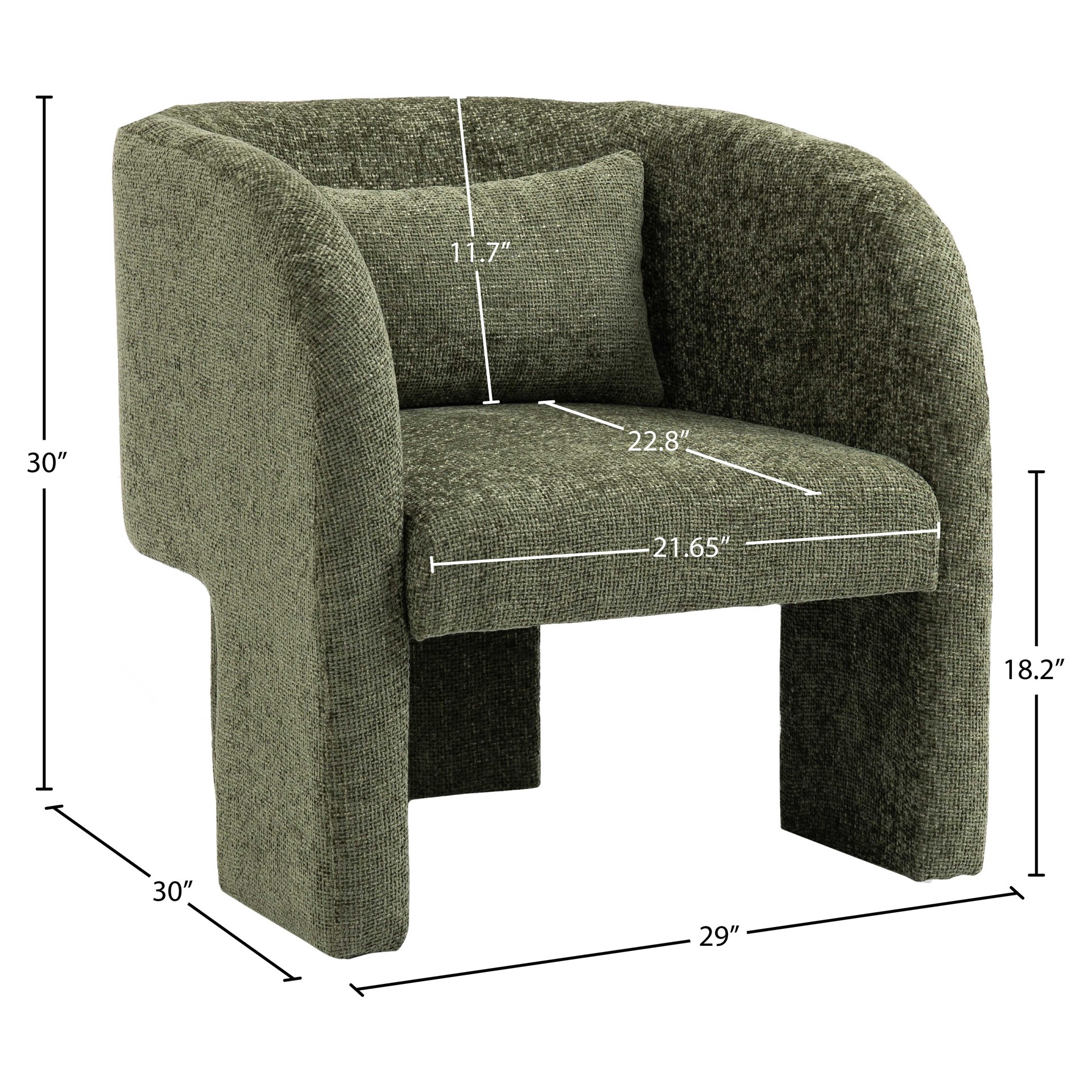 Showcase your upscale taste with this handsome Sawyer chenille fabric accent chair. Upholstered from top to bottom in super-soft green chenille cross-hatched fabric, this beautiful chair has a distinctively modern design that ensures it grabs attention, no matter the angle.