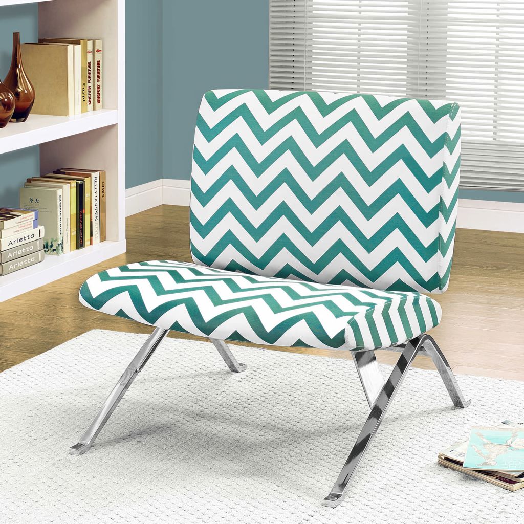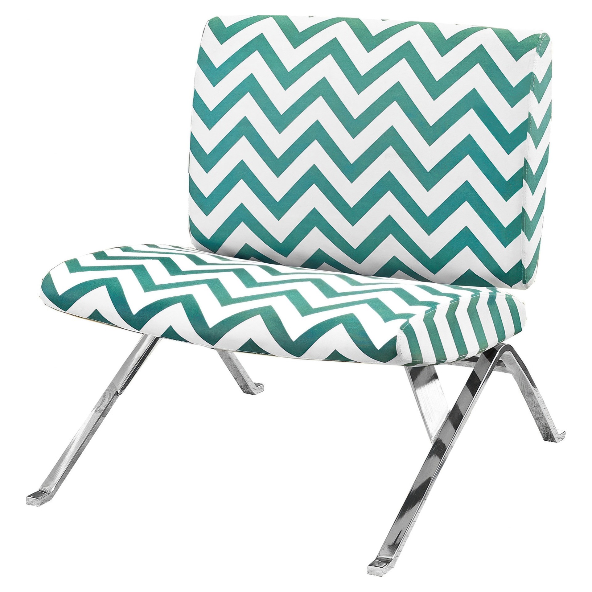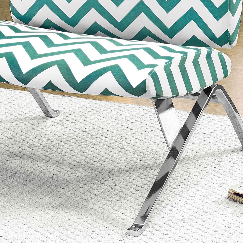 This accent chair perfectly combines contemporary style with optimal comfort. Upholstered in green chevron-patterned fabric, it adds a refined pop of color that complements any décor. The chrome frame provides a stable, elegant seat, while its clean design fits naturally into your living room, office, or bedroom.