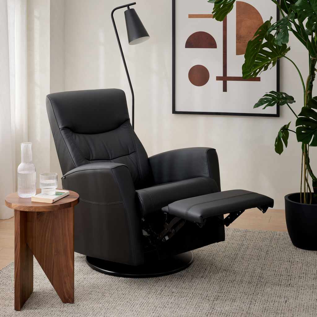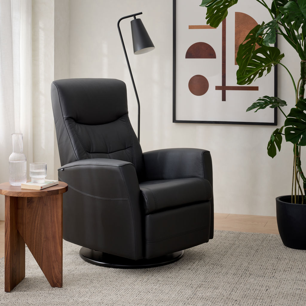 Discover the height of refinement with this black genuine leather recliner from the Oslo collection. Its elegant and timeless design blends perfectly into any modern or classic interior.