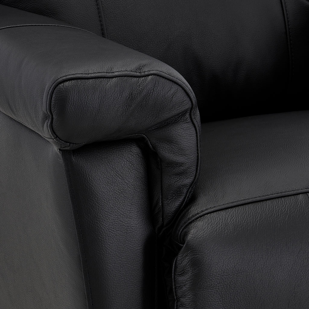 Immerse yourself in a world of absolute relaxation with this genuine leather recliner. Its timeless black design blends effortlessly into any interior, while the solid wood base ensures long-lasting durability and stability.