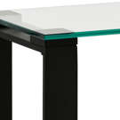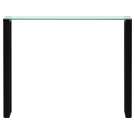This console table combines practicality and refinement with its sturdy black metal frame and clear glass top. Its sleek design blends seamlessly into any interior, whether in a modern living room or an elegant entryway.