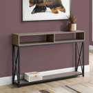 Adding plants, baskets, books or other decor items to the entryway, living room or bedroom? Featuring 2 open shelves, this console table is a stunning combination of taupe wood look tones with a sturdy X-design black metal frame to pair with any style.