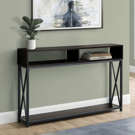 Adding plants, baskets, books or other decor items to the entryway, living room or bedroom? Featuring 2 open shelves, this console table is a stunning combination of espresso wood look tones with a sturdy X-design black metal frame to pair with any style.