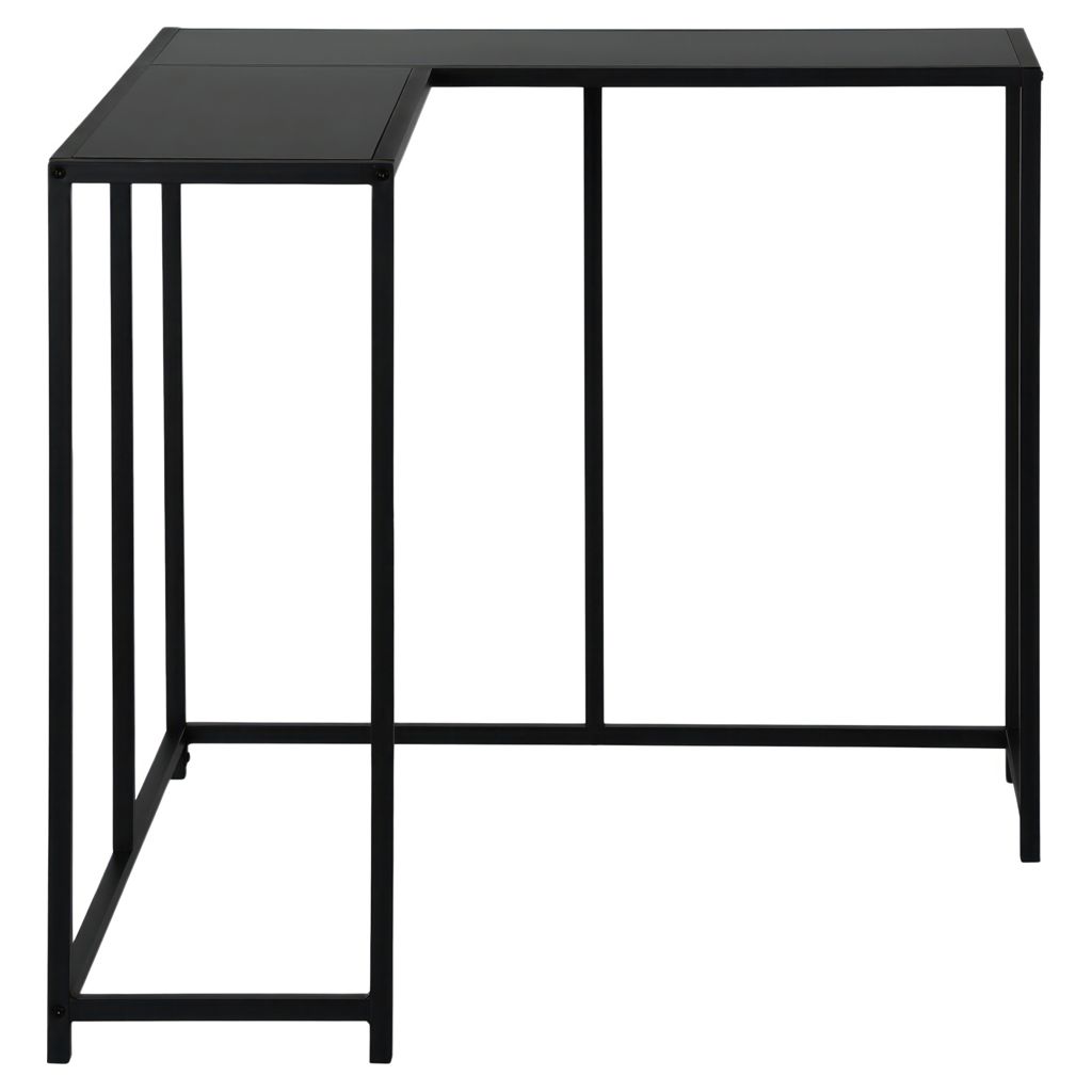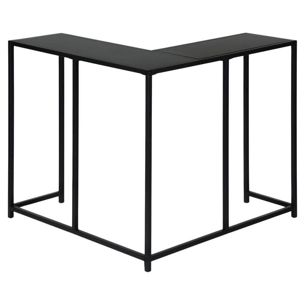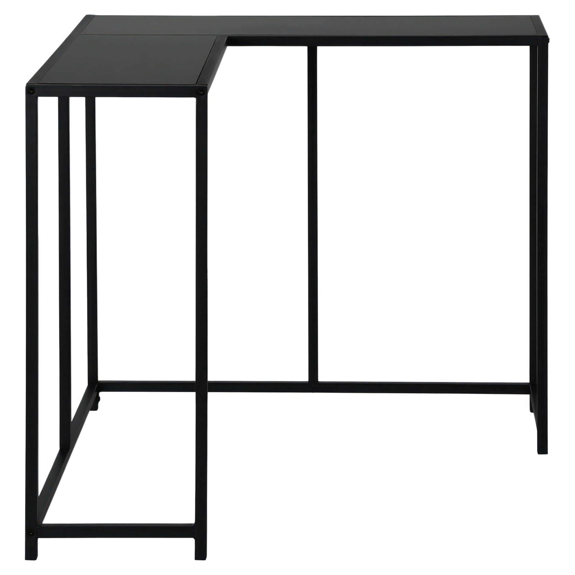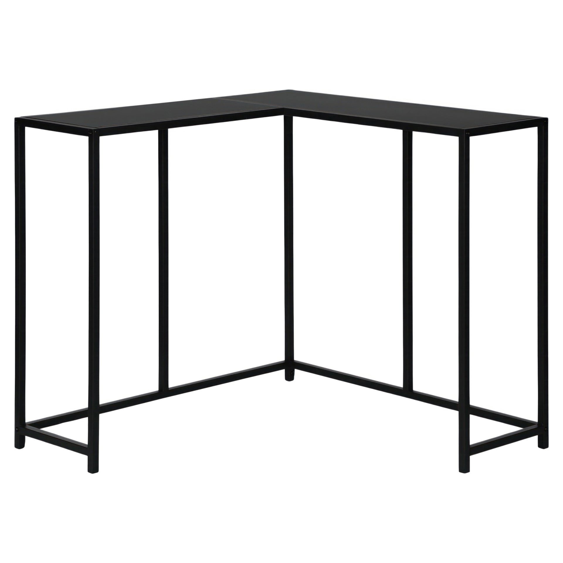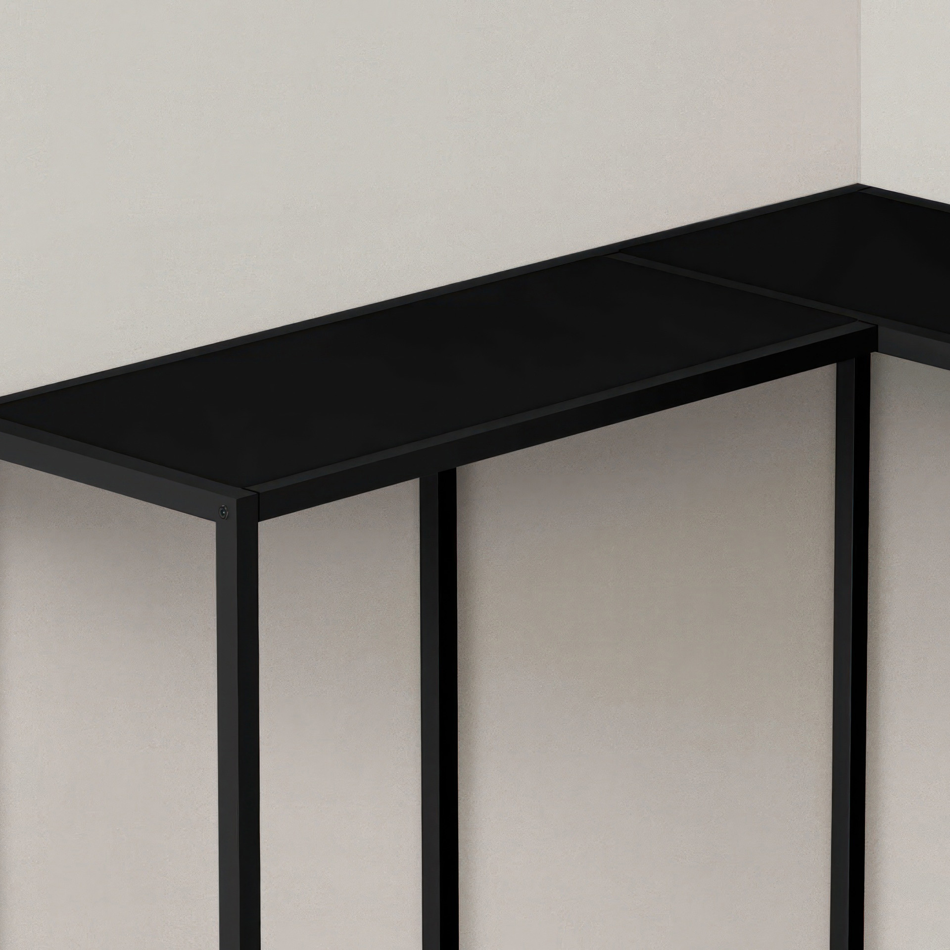 Tabletop panels in a black laminate provide ample surfaces for displaying decorative objects. The slim metal frame in a matching black finish offers stability and has an open, airy design.