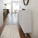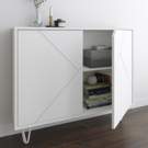 A true design reference and space saver, the Slim storage console signed by Nexera brings the useful and decorative side of furniture without losing any space. With its shallow depth, this piece of furniture, enhanced by its rounded metal legs, offers a discreet storage space on two internal shelves, hidden behind its double doors sculpted with geometric lines.