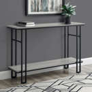 Featuring a sleek finish in a grey color, the solid black metal H frame provides stability. This console is sure to bring a fashionable touch to your home, apartment or condo.