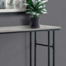 Contemporary wood look surfaces in a grey color. Modern H frame metal legs in black provide the stability you need. Perfect entryway table or accent table for the hallway, living room, bedroom or office.