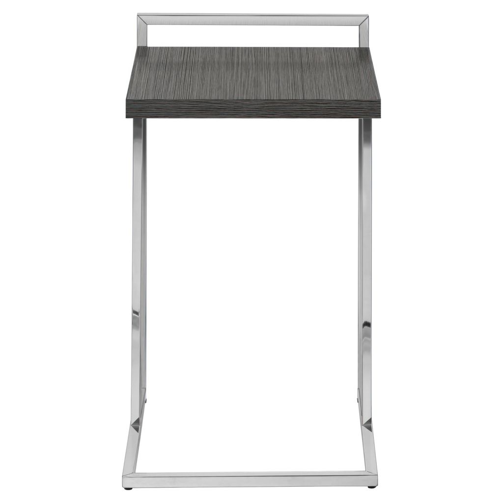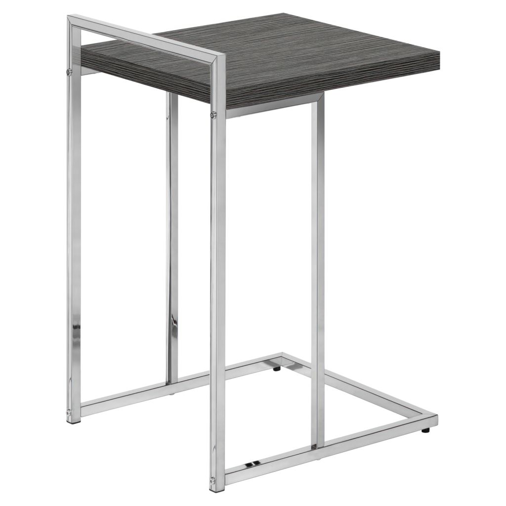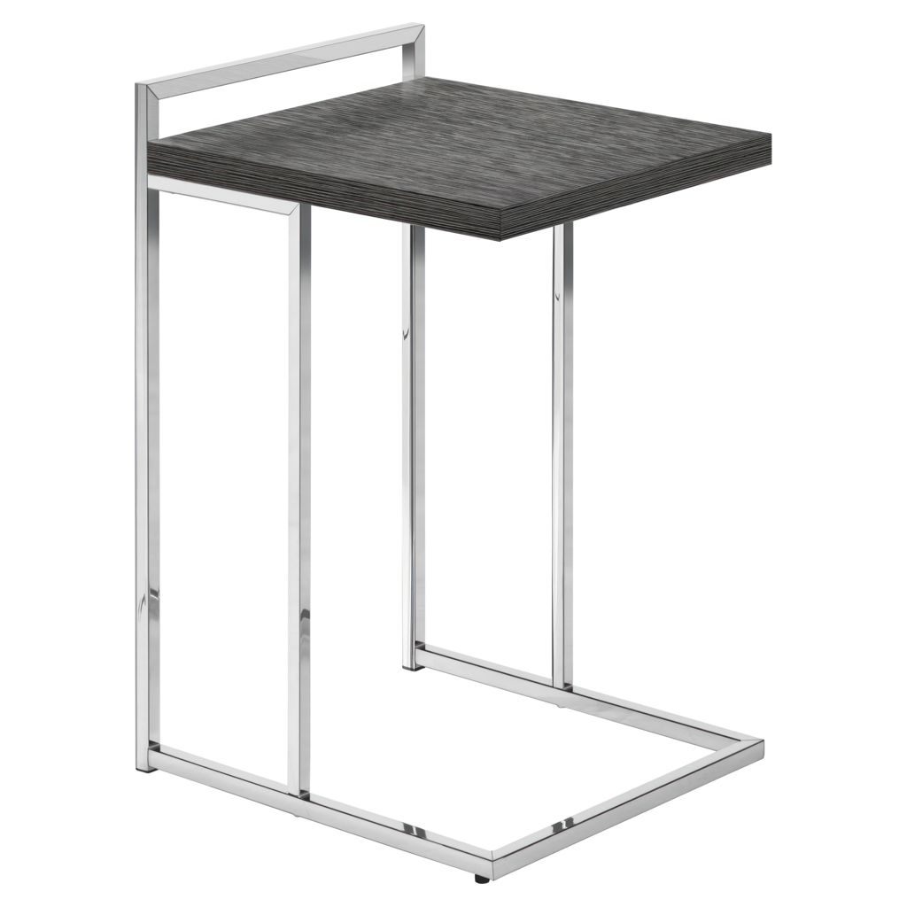 The chrome metal base slides under a sofa or bed to bring items closer to you and offers another convenient feature: The top of the frame extends over the tabletop to create a handle that makes it easier to lift and move this portable side table.