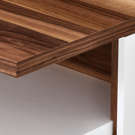 This end table blends natural elegance with modern functionality. Crafted from genuine walnut, it showcases the warm tones and unique grain patterns of this noble wood. Its clean design, highlighted by contrasting white accents, integrates seamlessly into any contemporary interior.