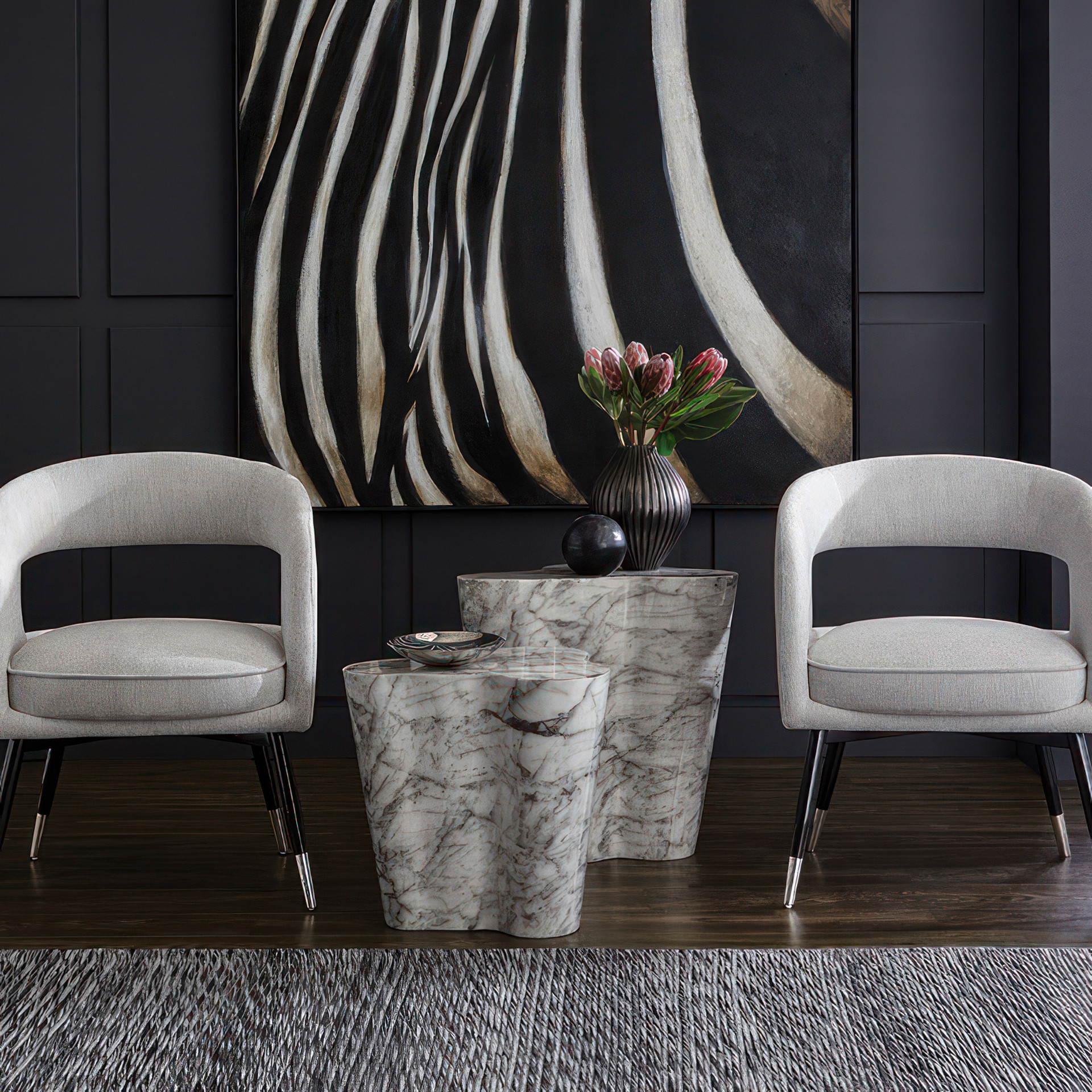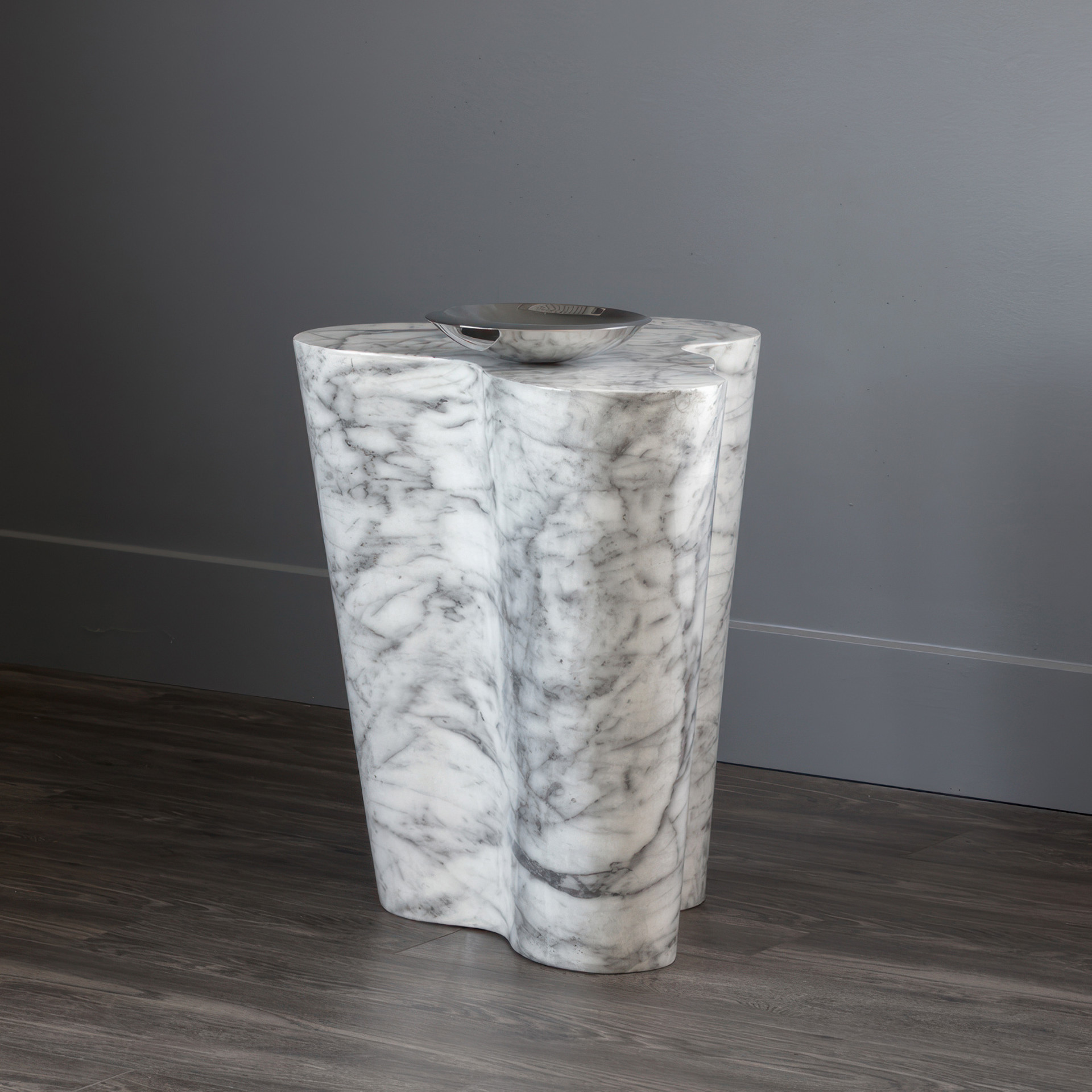 This sculptural end table will instantly elevate your space with its natural elegance. Crafted from high quality concrete with unique marbled veining, each piece tells its own story through distinctive organic patterns.