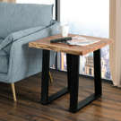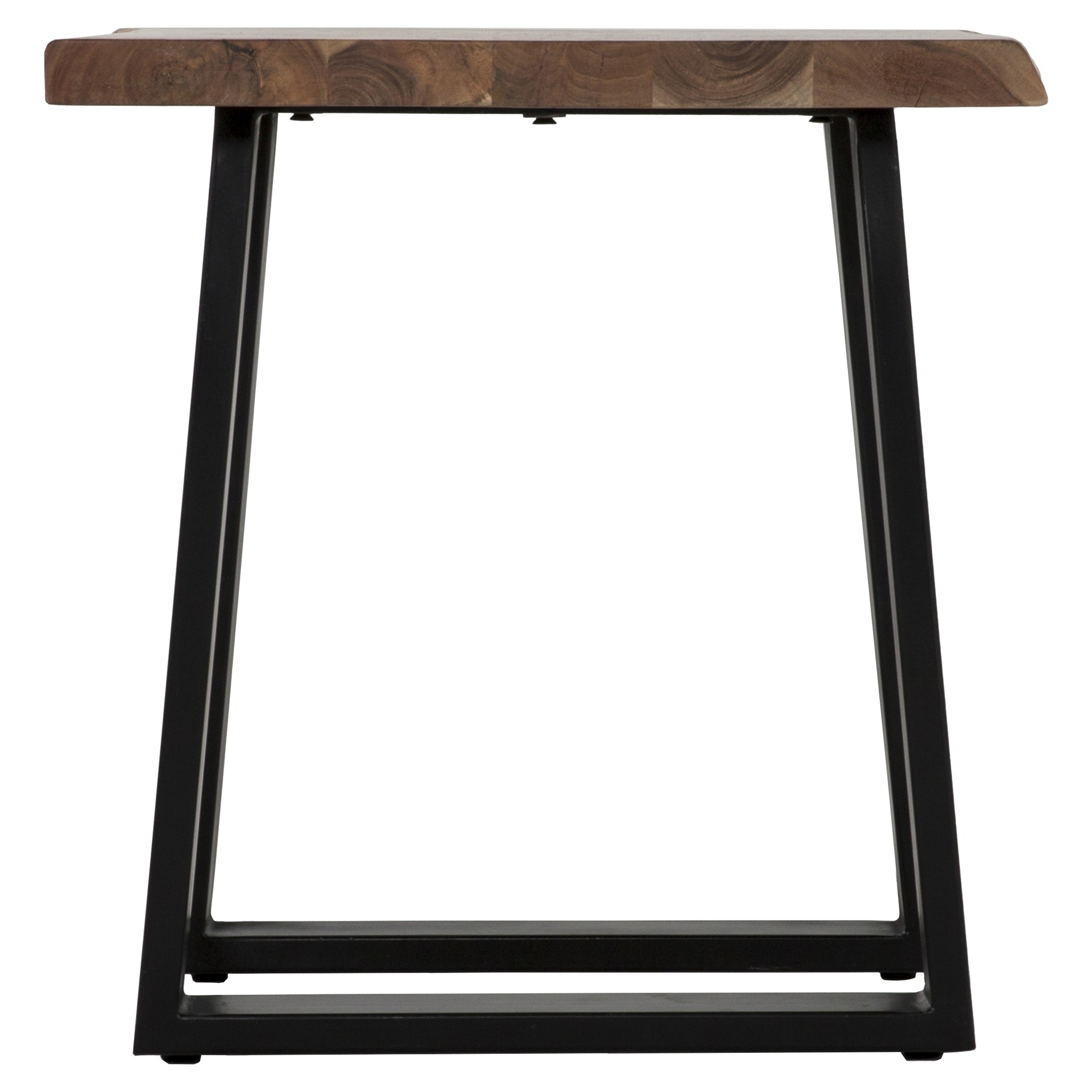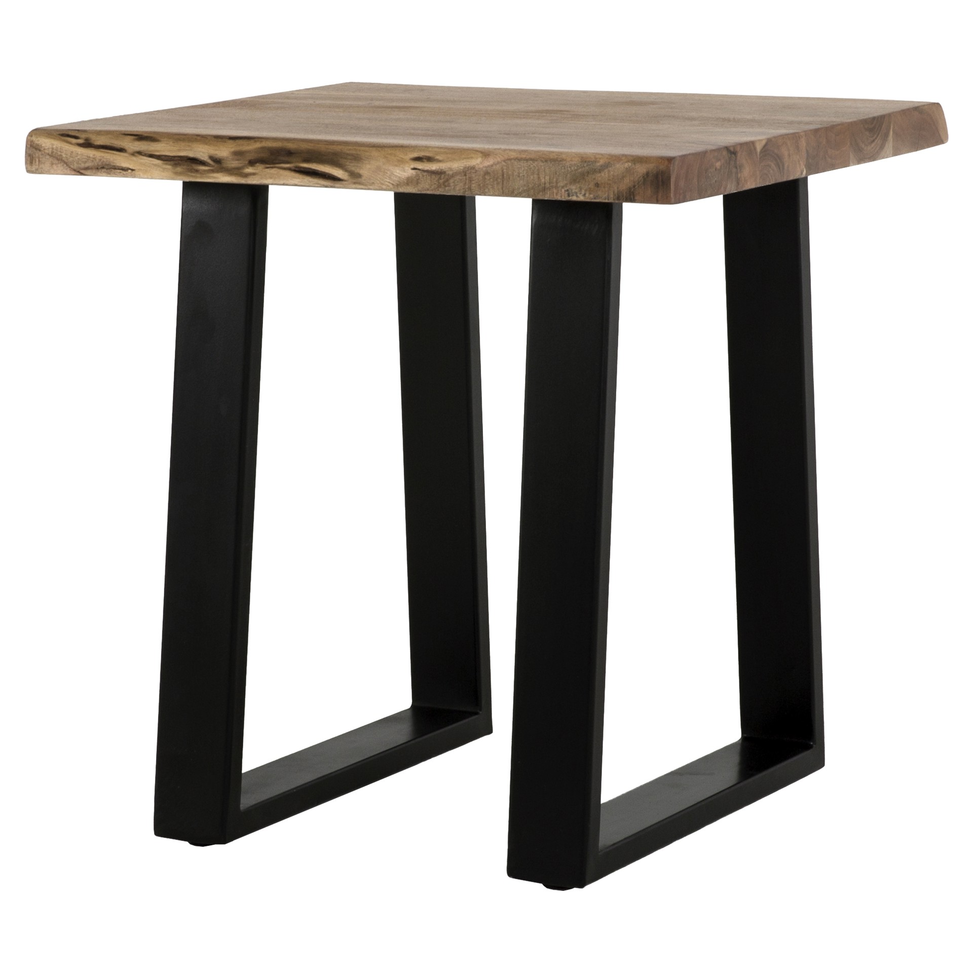 This beautiful end table perfectly combines the natural beauty of acacia wood with the strength of black metal. Each piece is unique thanks to the distinctive grain patterns and warm tones of the wood, creating authentic character that evolves over time.