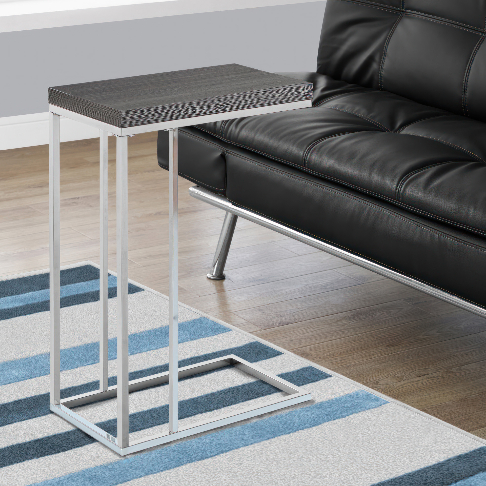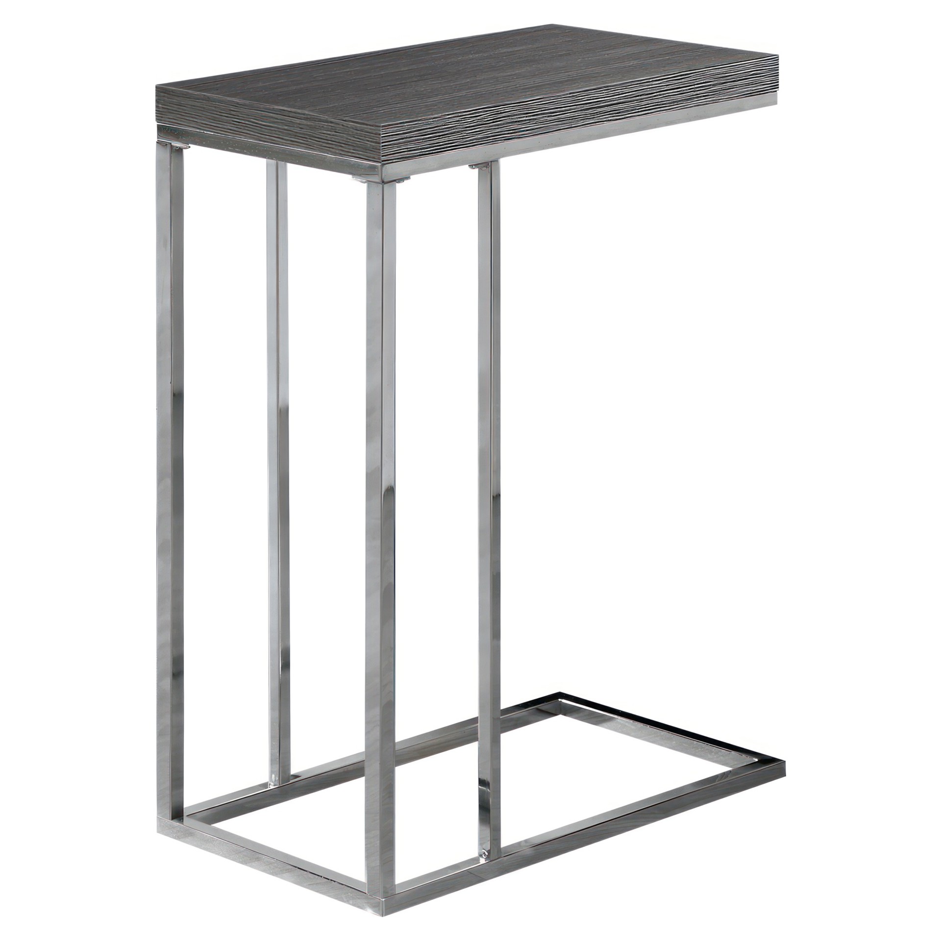 For a more modern look in your living room, family room, office or bedroom, this elegant wood-look side table in an oak grey/chrome metal finish will meet your expectations.