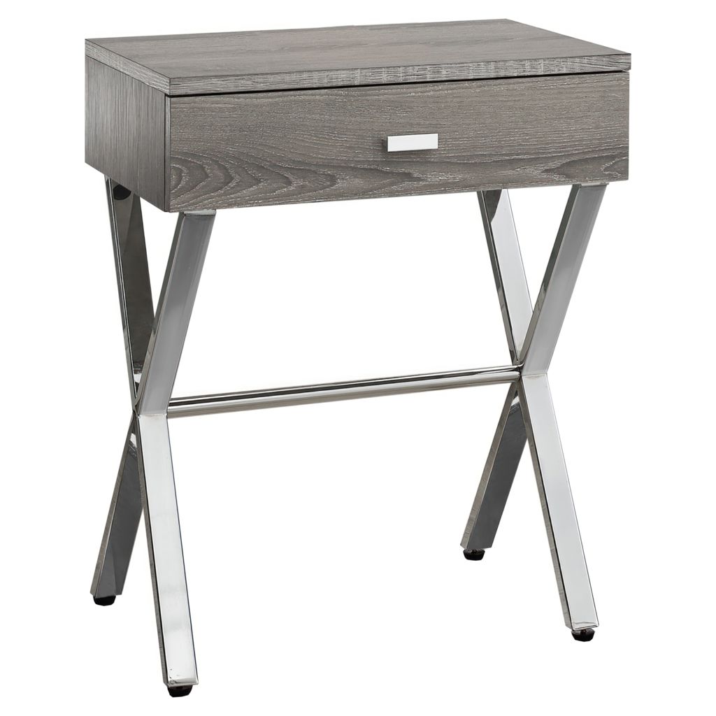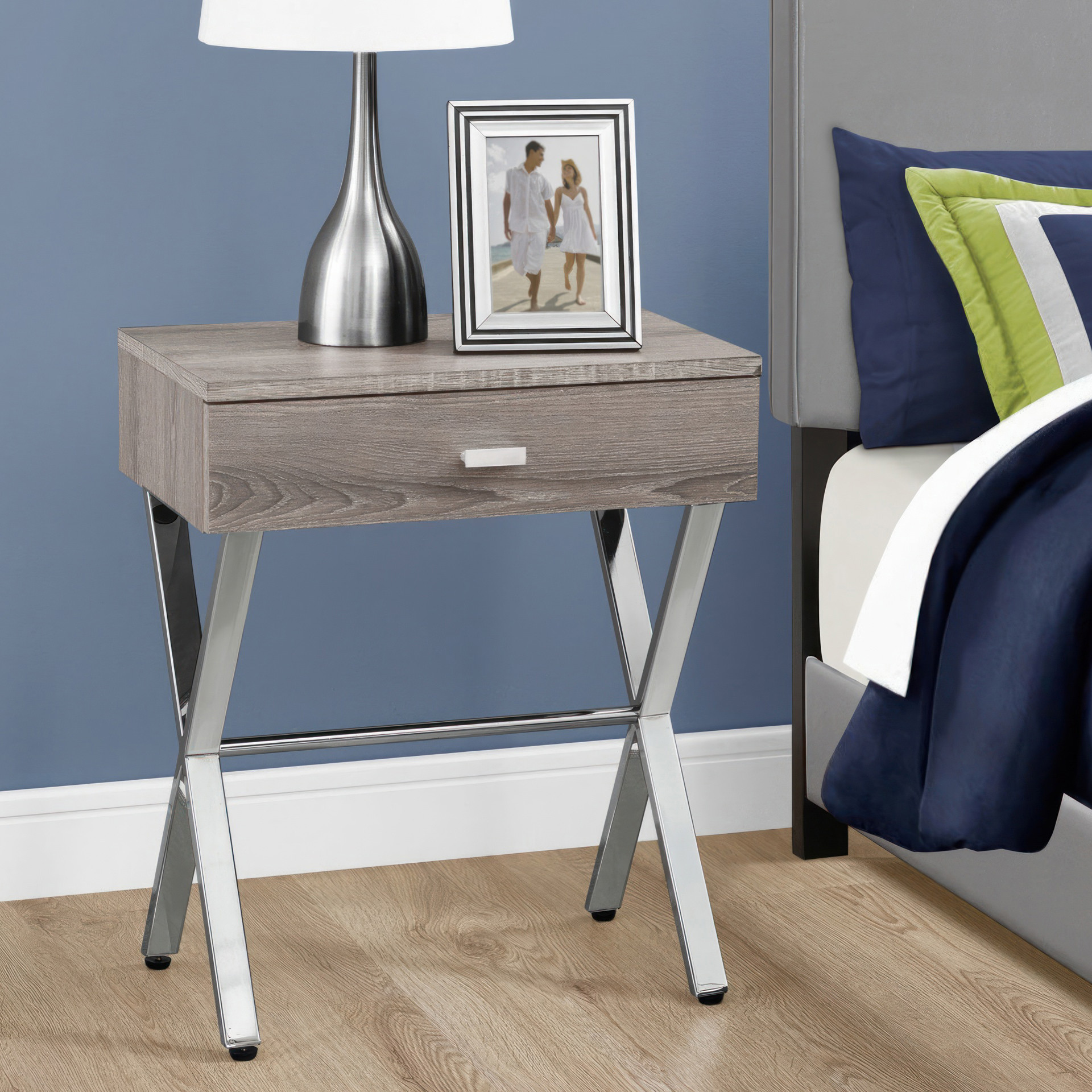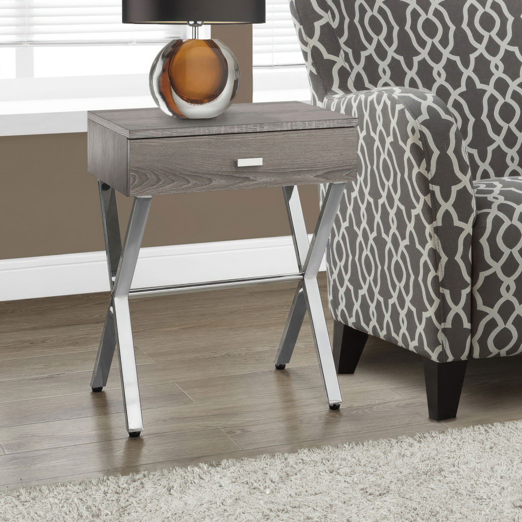 It effortlessly complements any other décor in your living room, family room, office or bedroom. For a more modern look in your living room, family room, office or bedroom, this elegant taupe/chrome metal side table will meet your expectations.