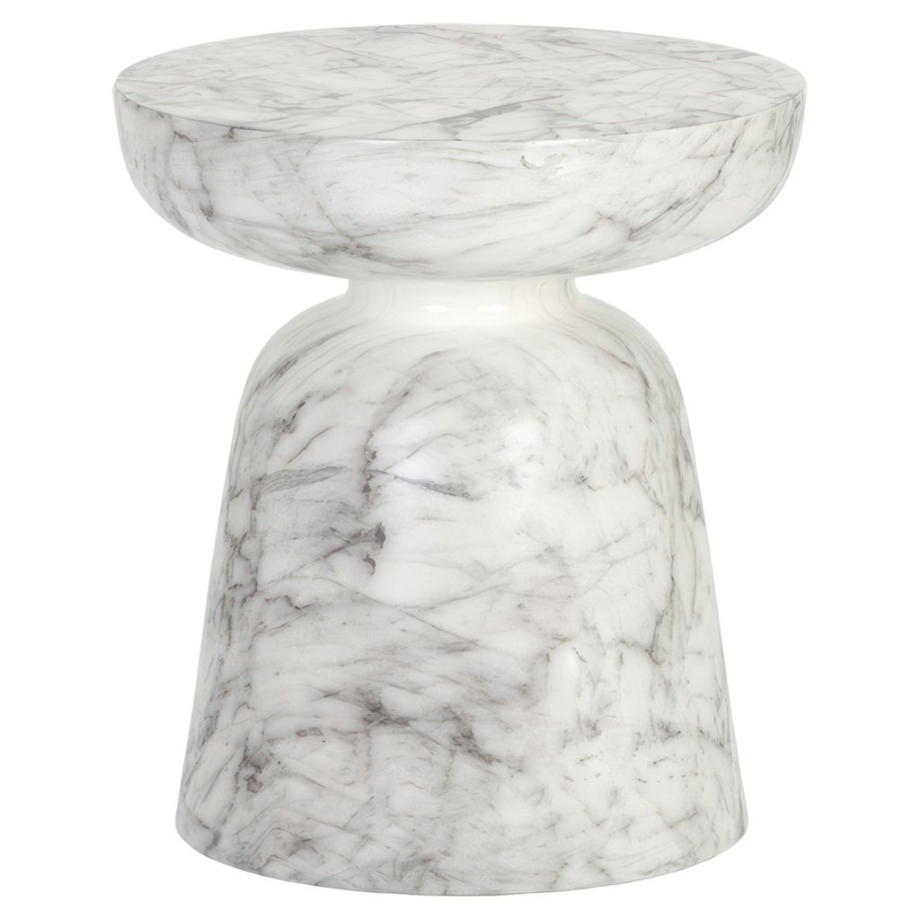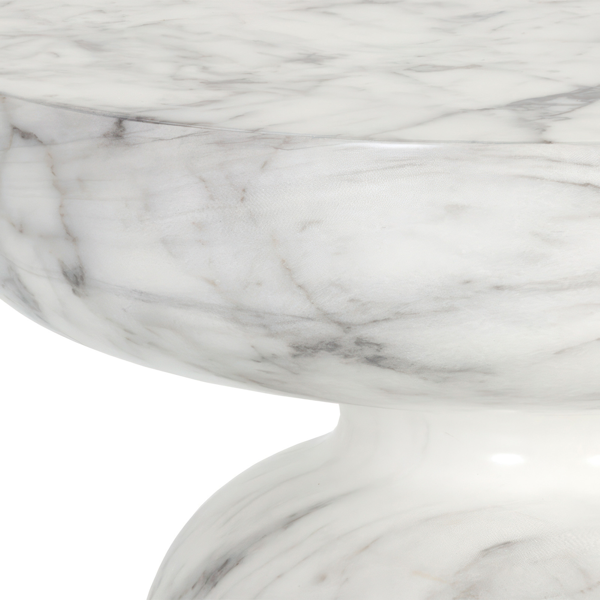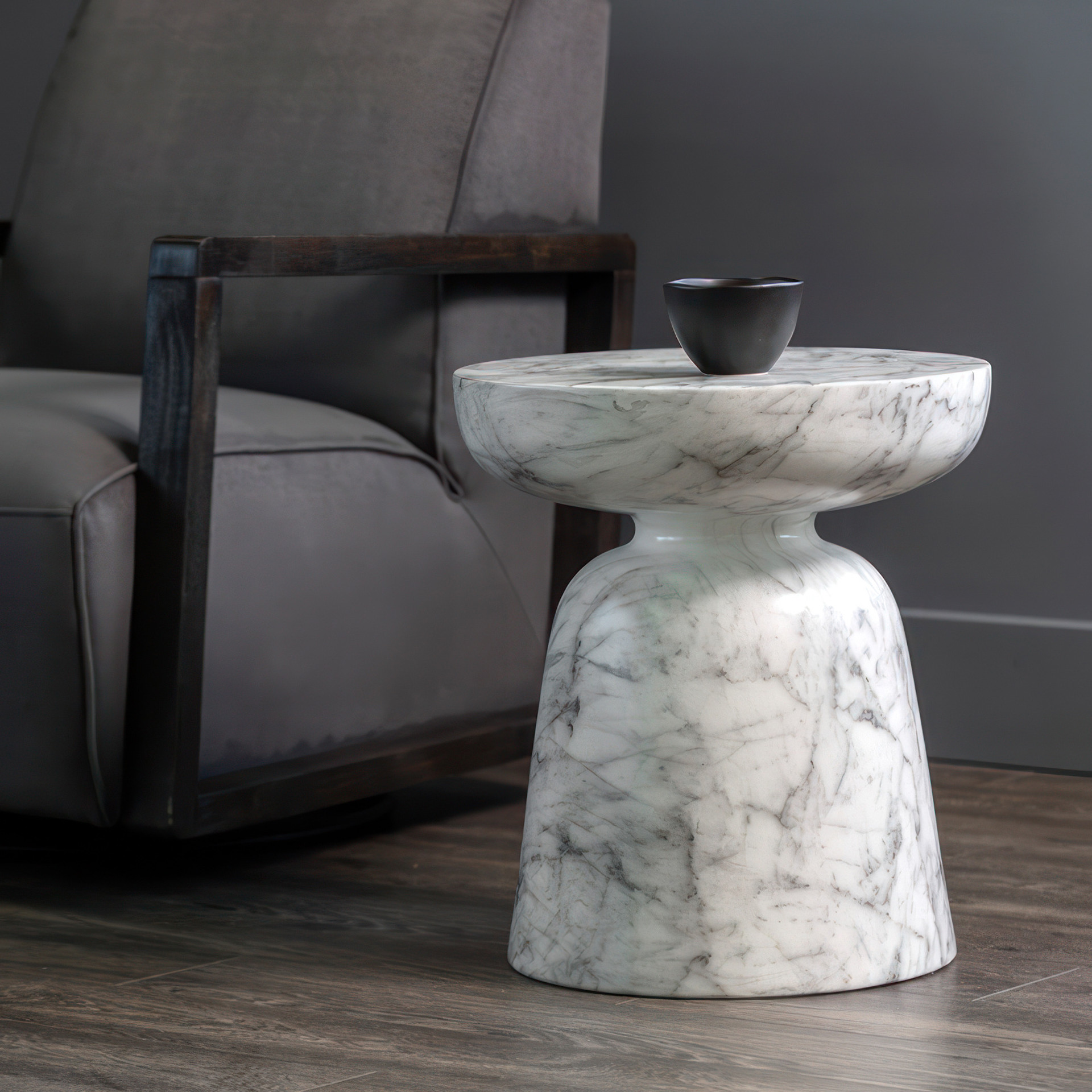 This attractive concrete end table will add depth and excitement to any space. The white painted marble look finish makes it ideal for contemporary indoor and outdoor locations. Suitable for indoor and outdoor covered spaces.