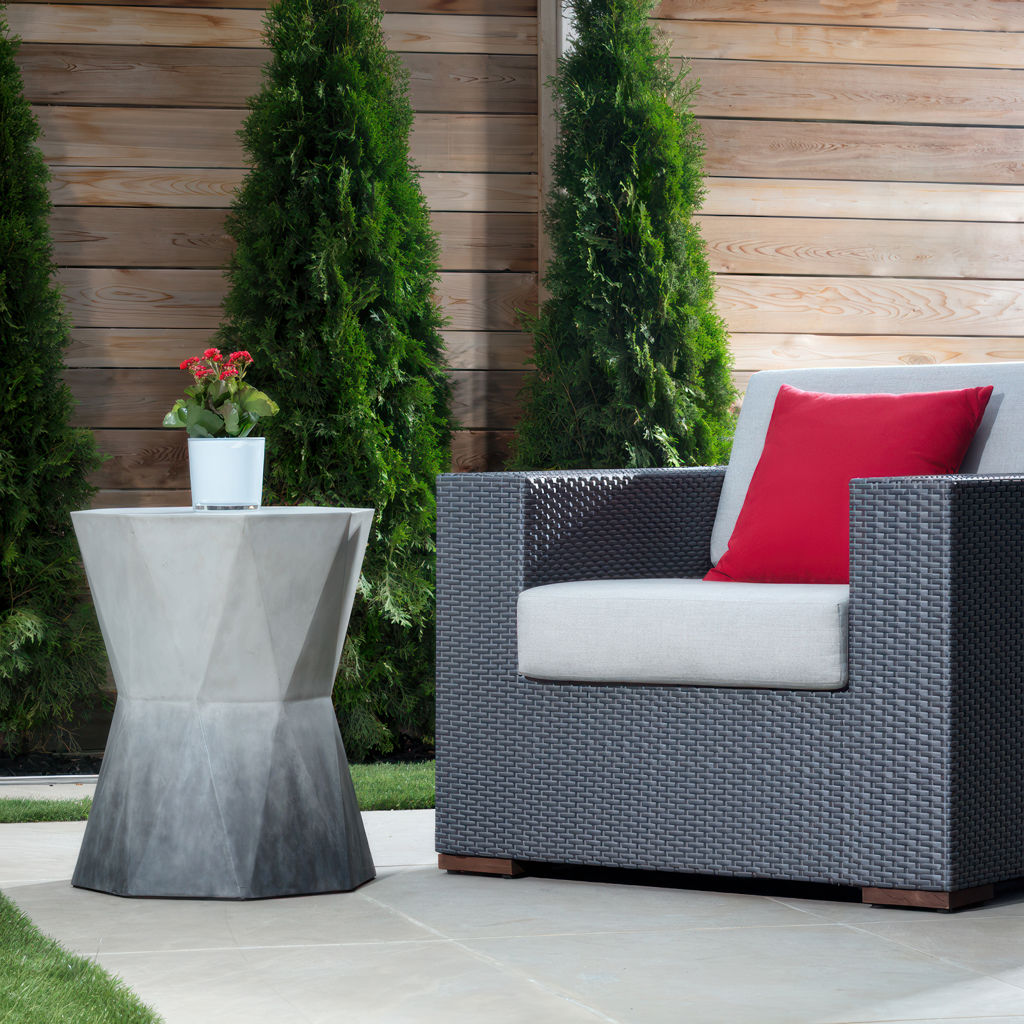 This well-sized concrete end table from our Solterra collection features a geometric shape with a handsprayed ombre finish for added style. This end table is ideal for contemporary and urban spaces, and can be used both indoors and outdoors.