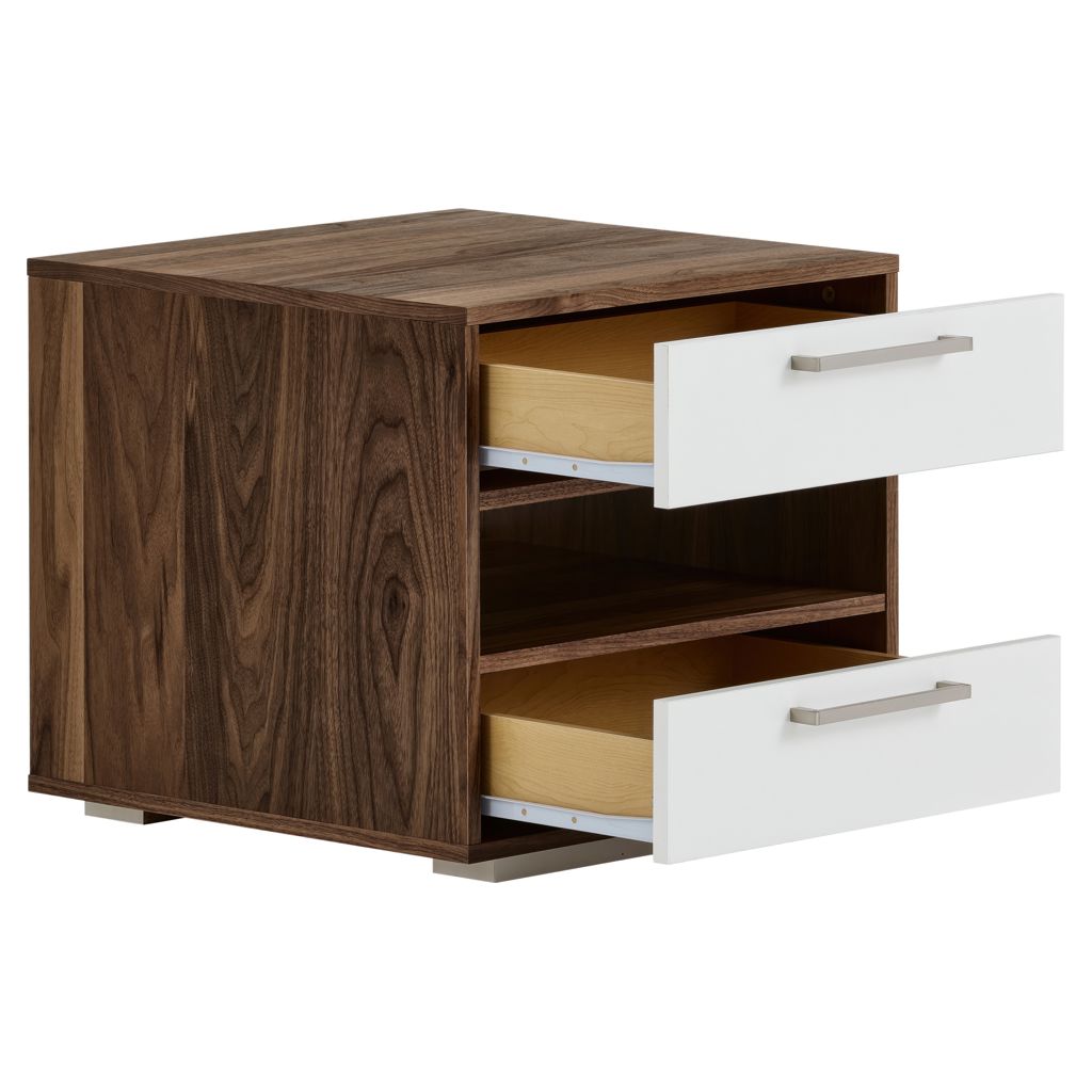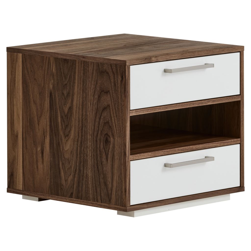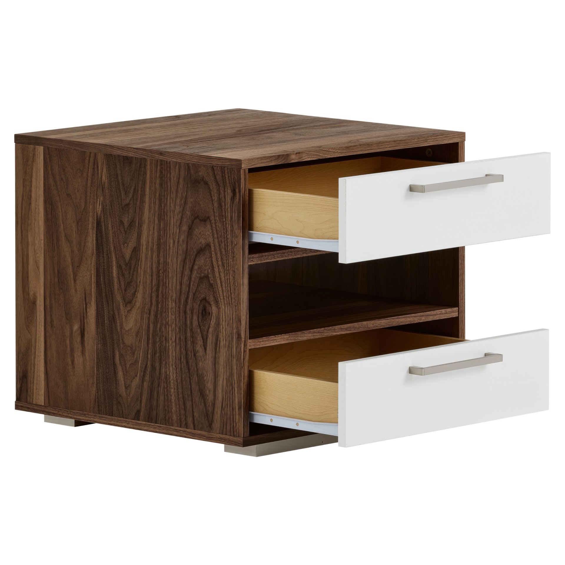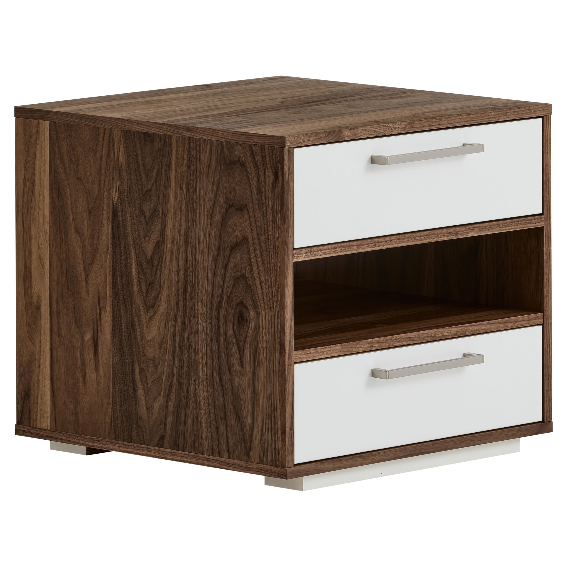 This elegant end table perfectly combines functionality and style to transform your living space. With its two spacious drawers on smooth glides and an open compartment, it offers smart storage for your everyday essentials.