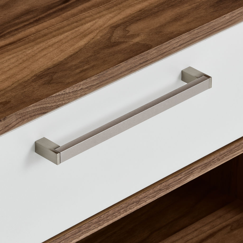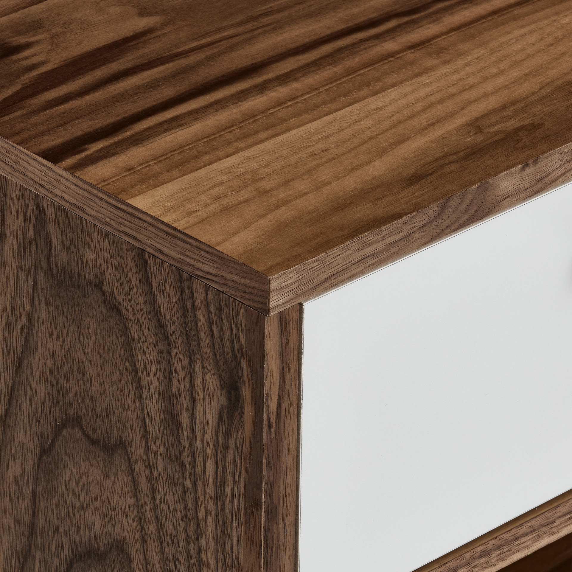 The melamine finish resists scratches and stains, ensuring lasting beauty with minimal upkeep. Its warm two-tone design blends harmoniously into any décor, while the clean lines add a touch of sophistication to your living room or bedroom.
