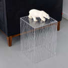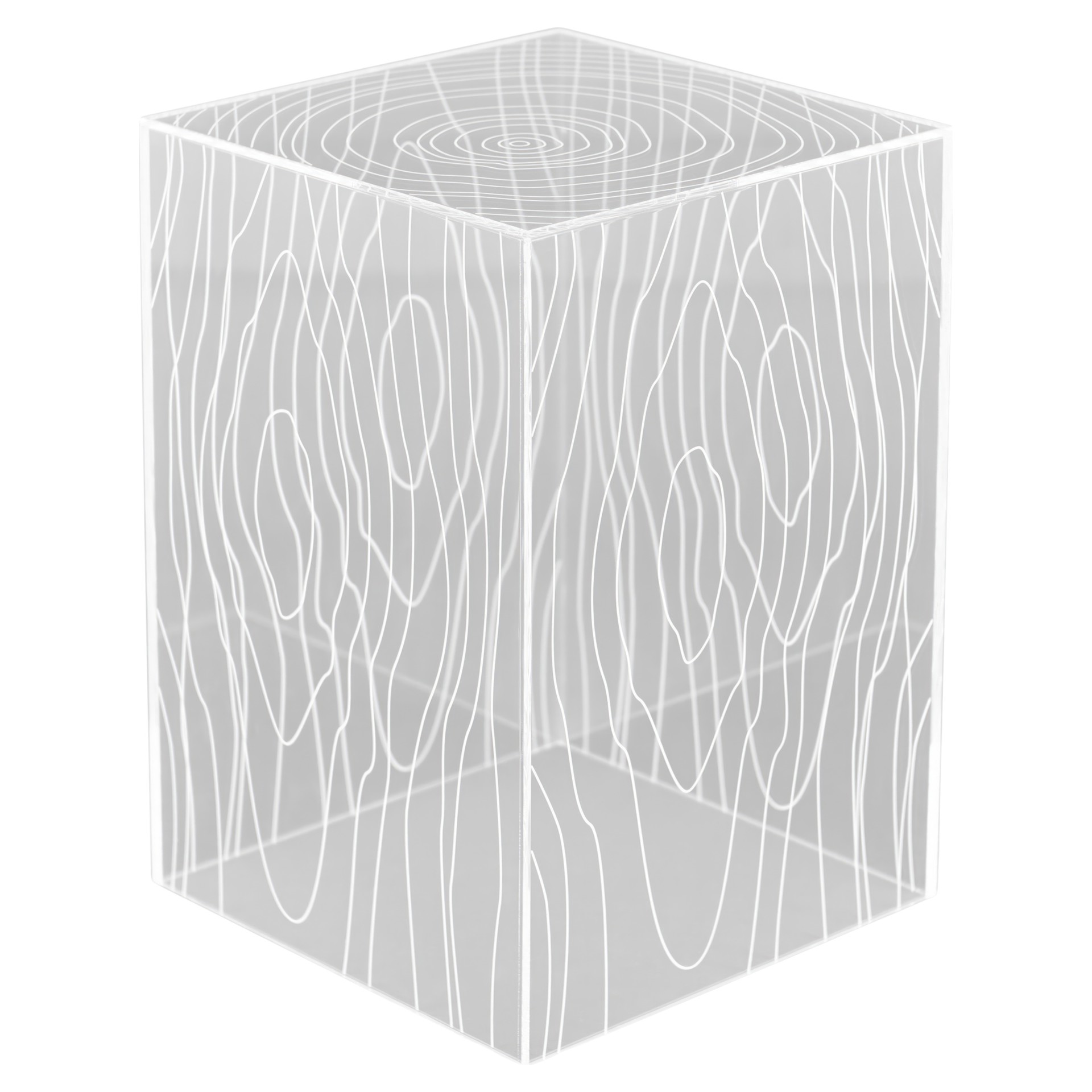 This side table playfully fuses wood grain patterns onto a five-sided acrylic box, juxtaposing organic lines with modern materials. It can be flipped over to create a stylish storage solution. Looks great in a group or as a stand-alone accent piece.