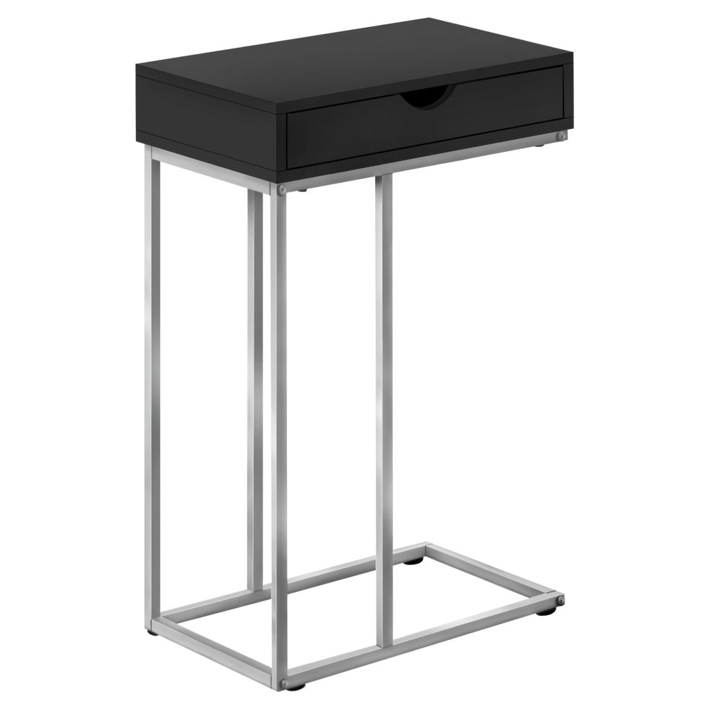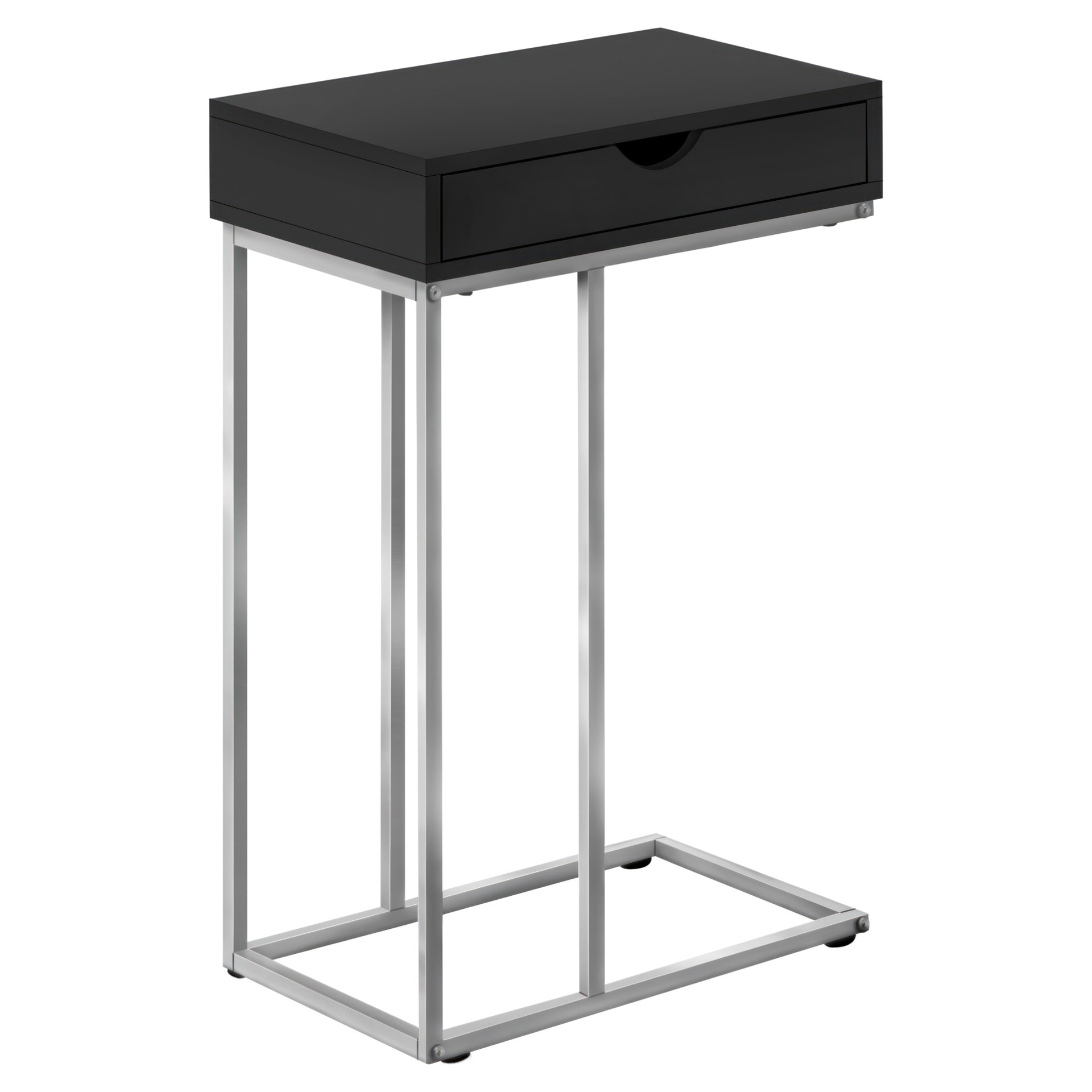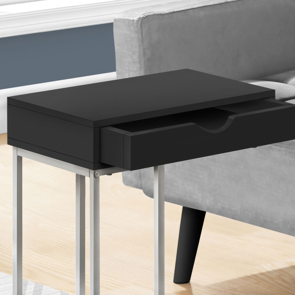 Stylish and versatile, this portable side table features a smooth black laminate finish top and silver metal frame that adds a modern look anywhere you need a small side table with storage.