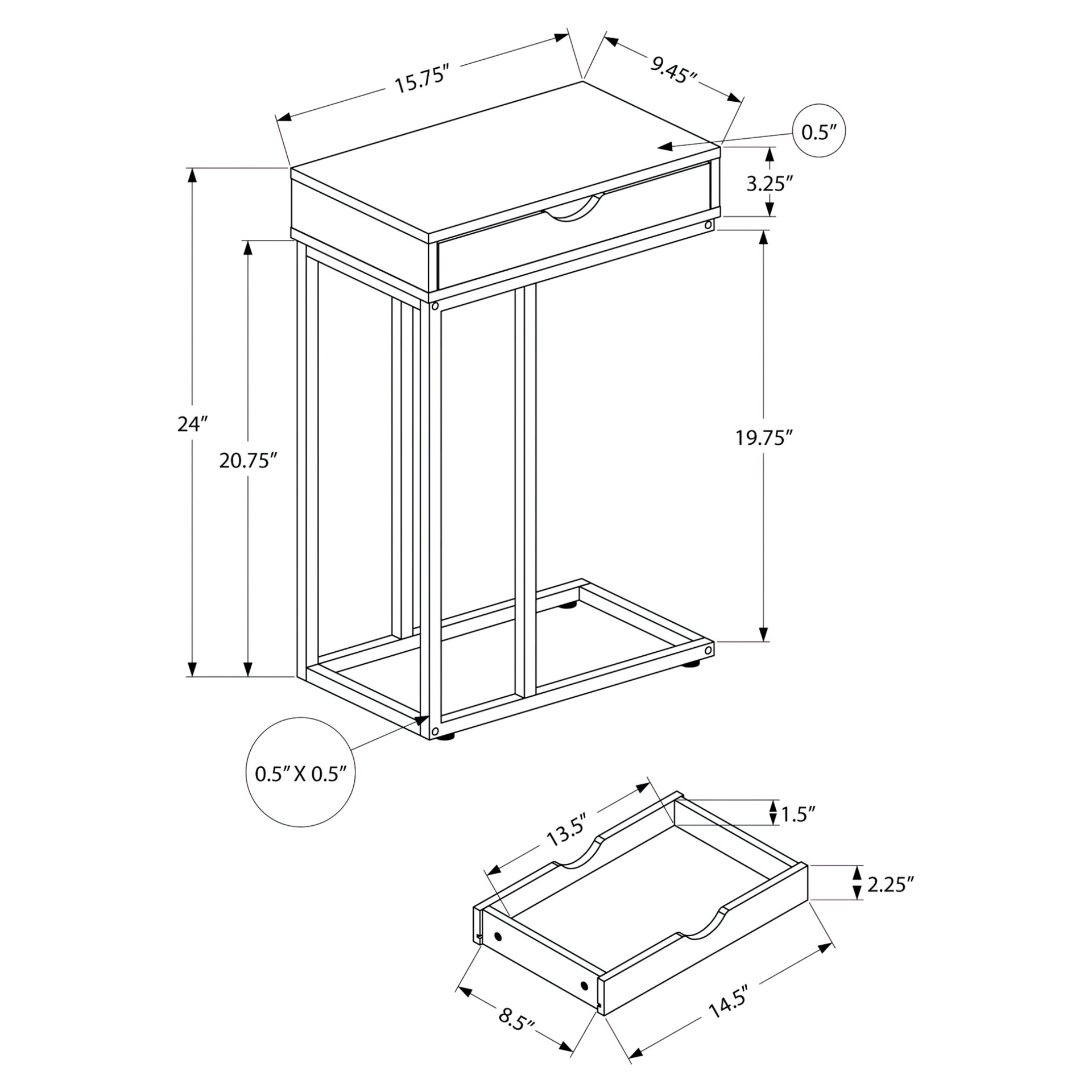 The C-shaped base slides under your sofa or chair, placing the table surface close to you. For added convenience, the top includes a storage drawer accessible from both sides.