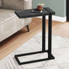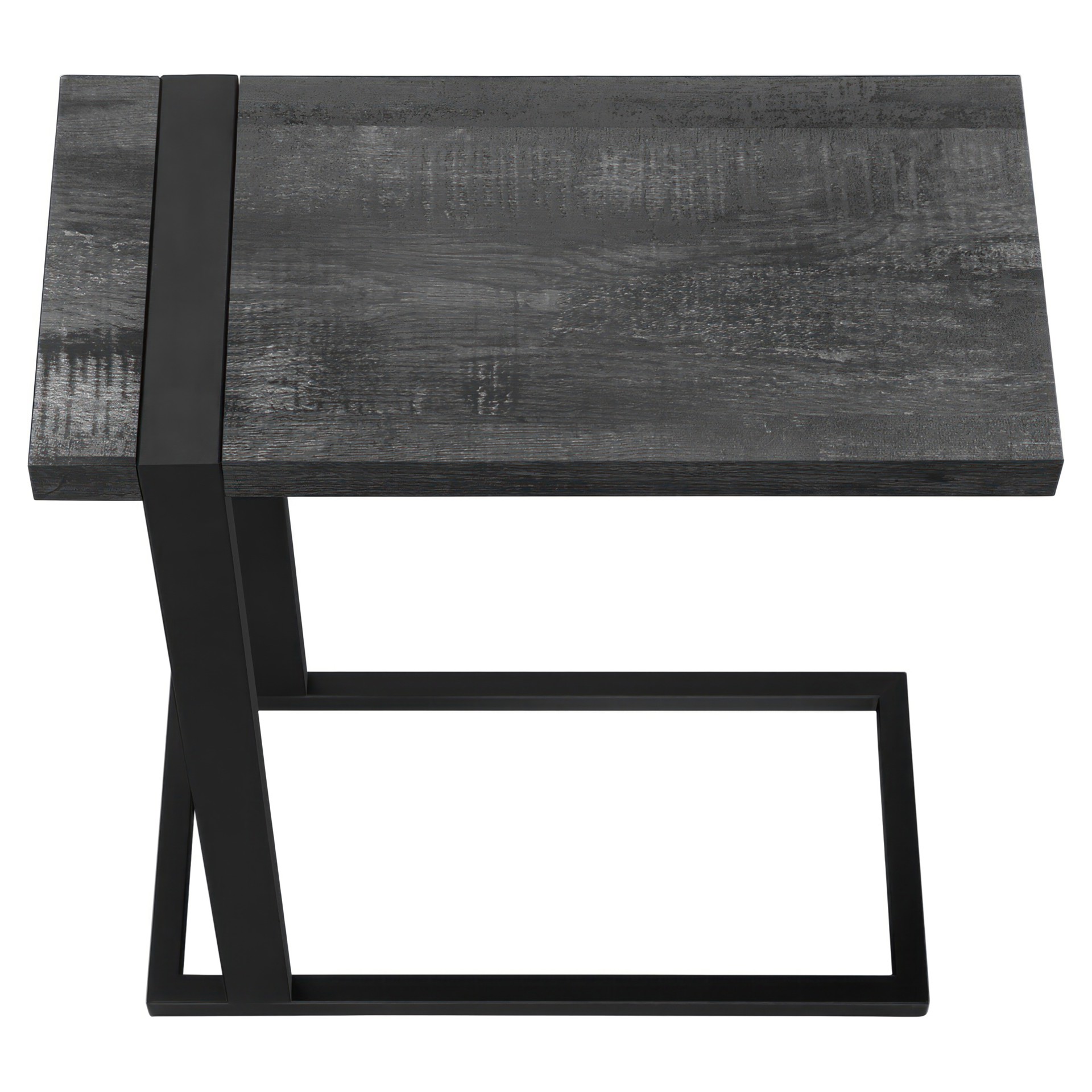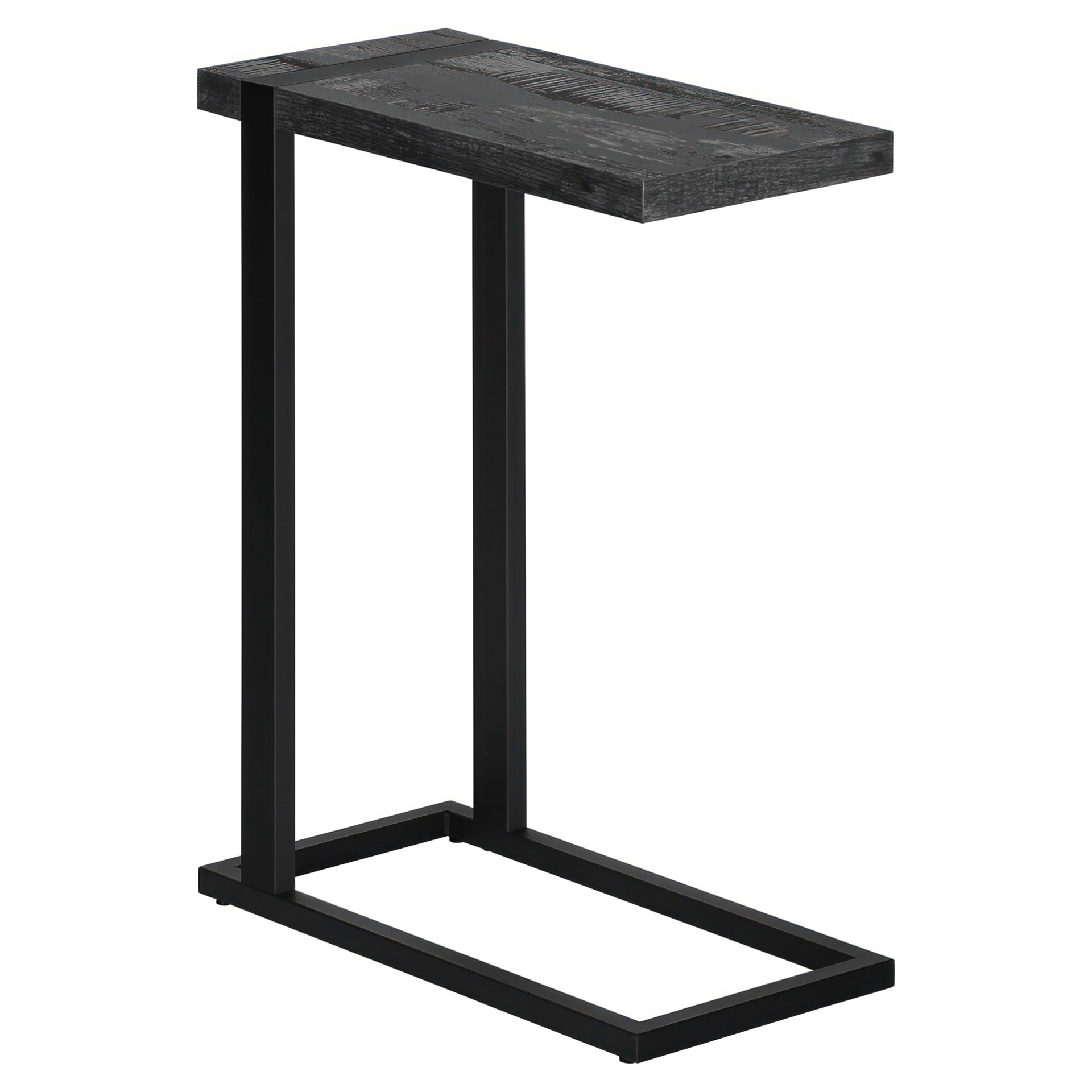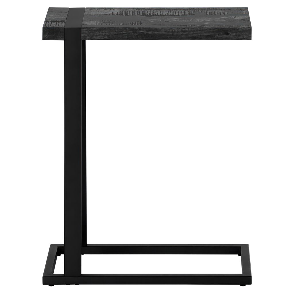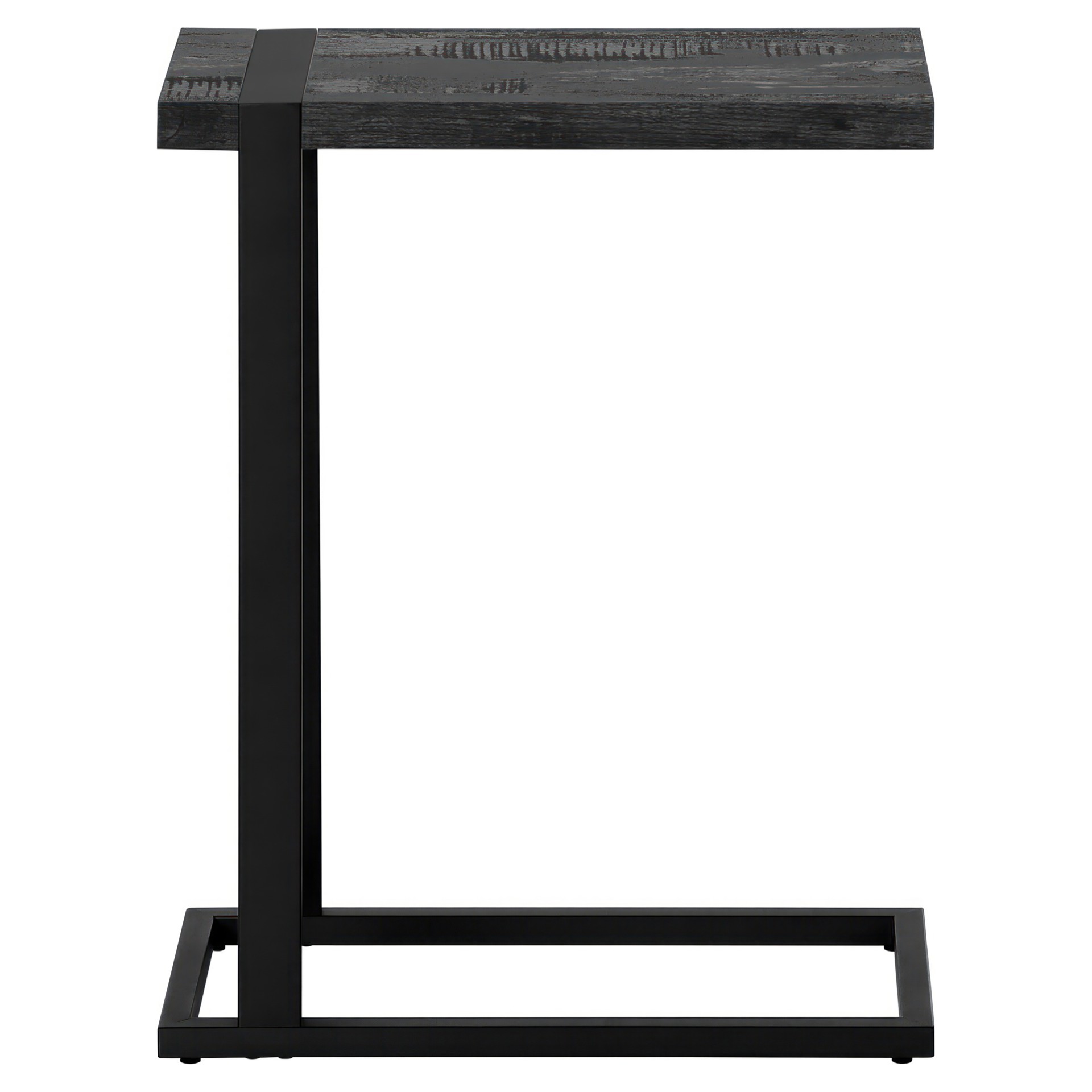 Industrial-farmhouse style combines modern metal with a rustic wood finish to create a warm, inviting look. This C-shaped accent table embodies that popular style.
