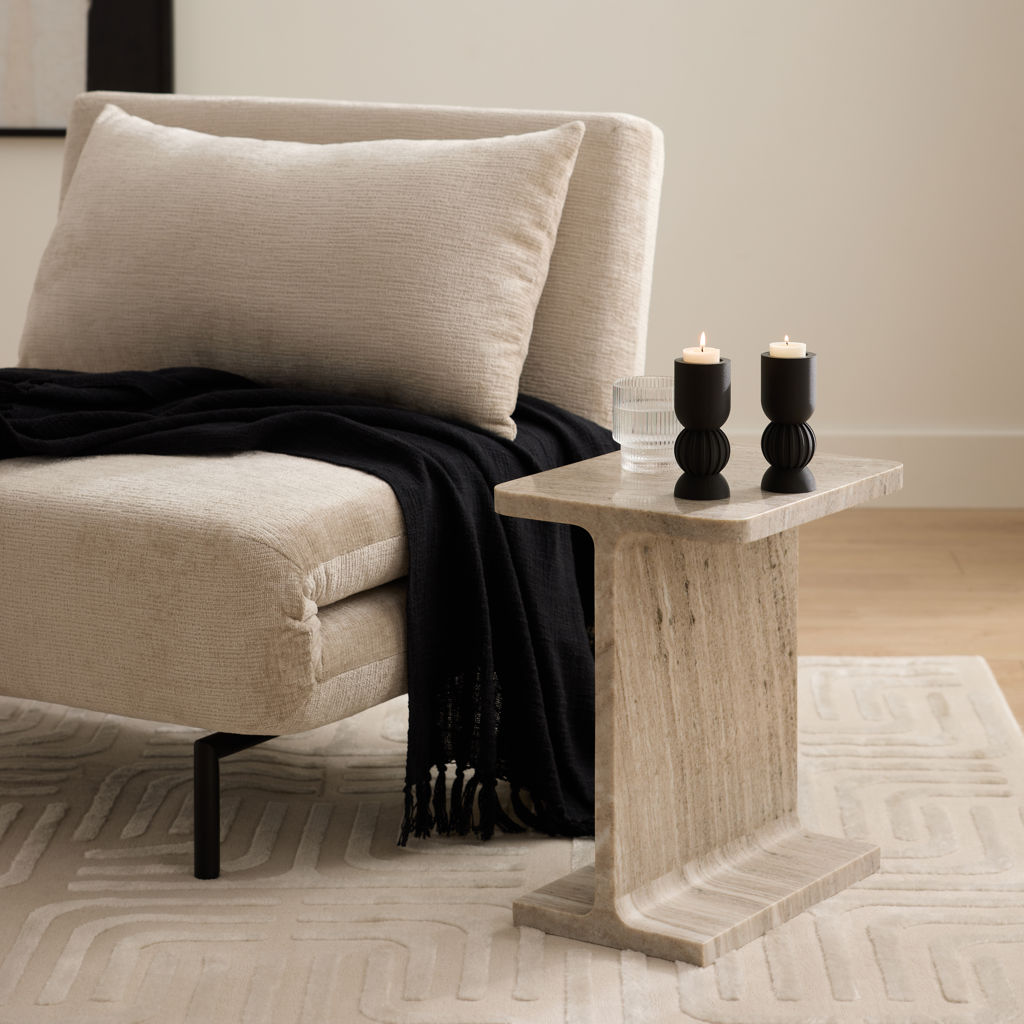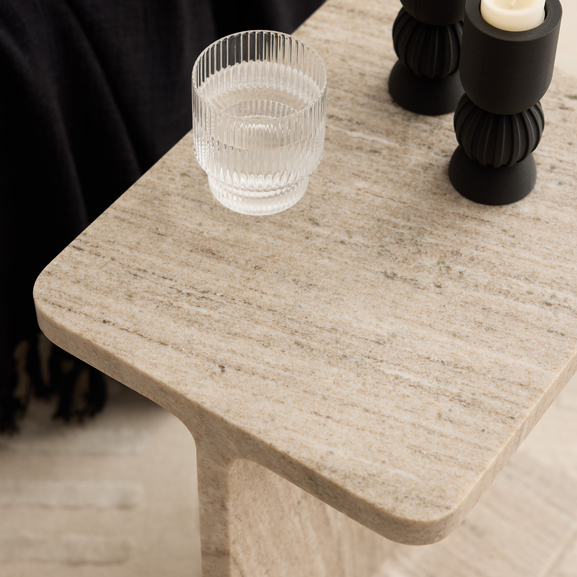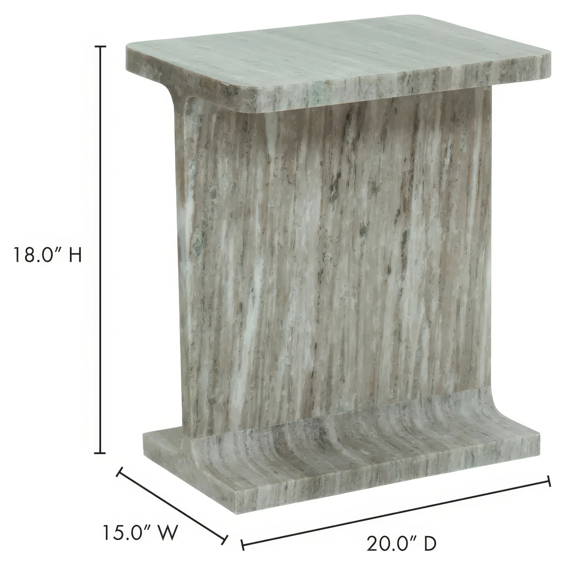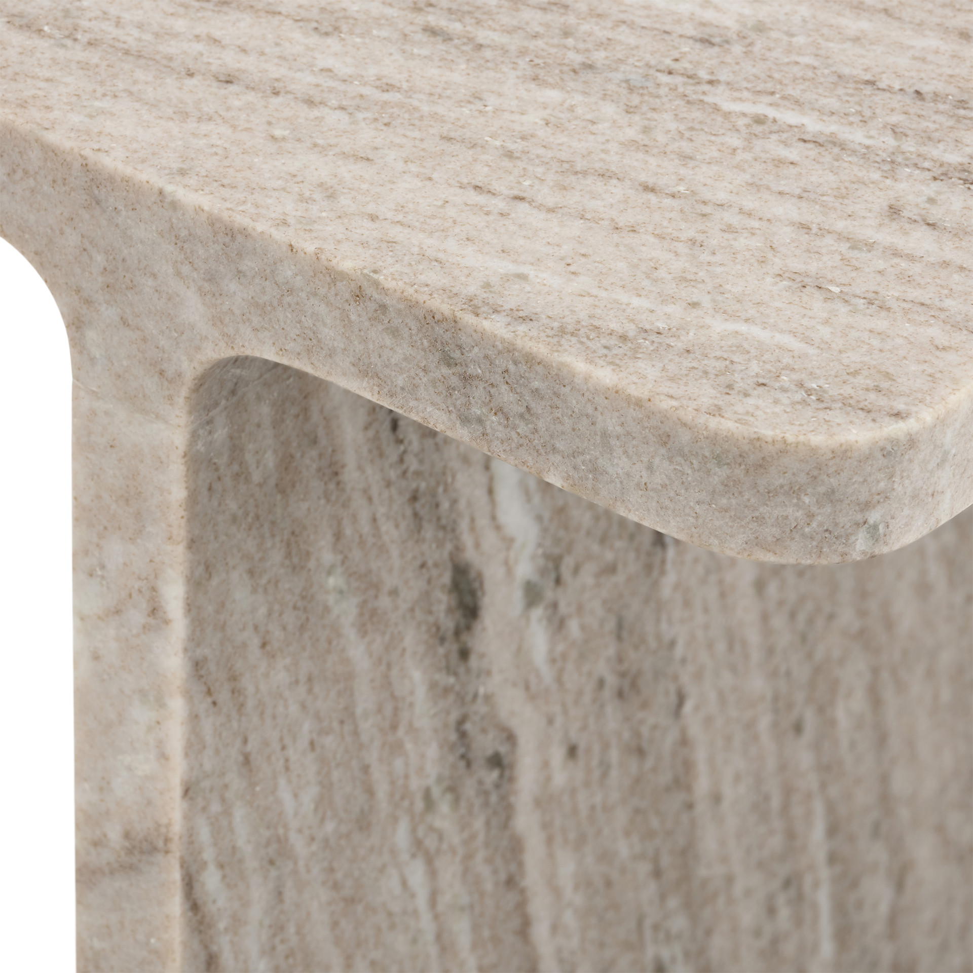 The Tullia accent table blends modern architecture and luxury. Taupe marble and I-beam form is an intersection of design and practicality, versatile in its functionality. A perfect blend of stylish flair and elegance, the Tullia Accent Table adds a timeless touch to any space.