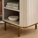 Enhanced by gold metal legs, this piece blends harmoniously into any interior.