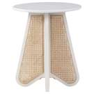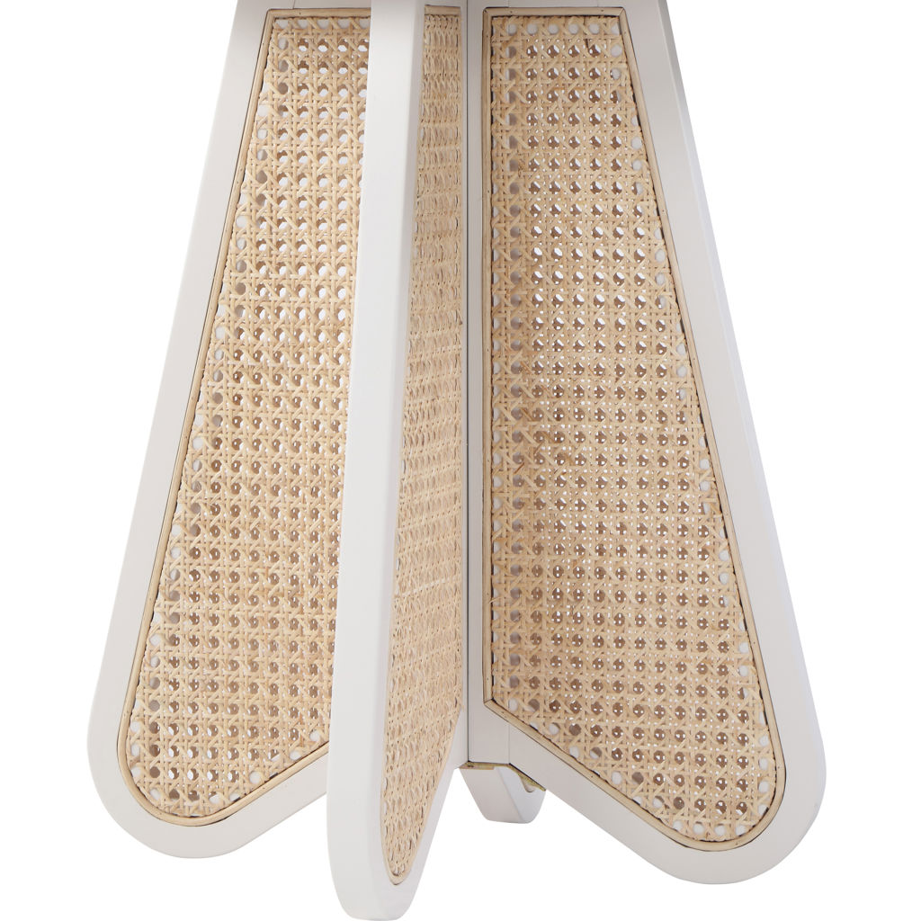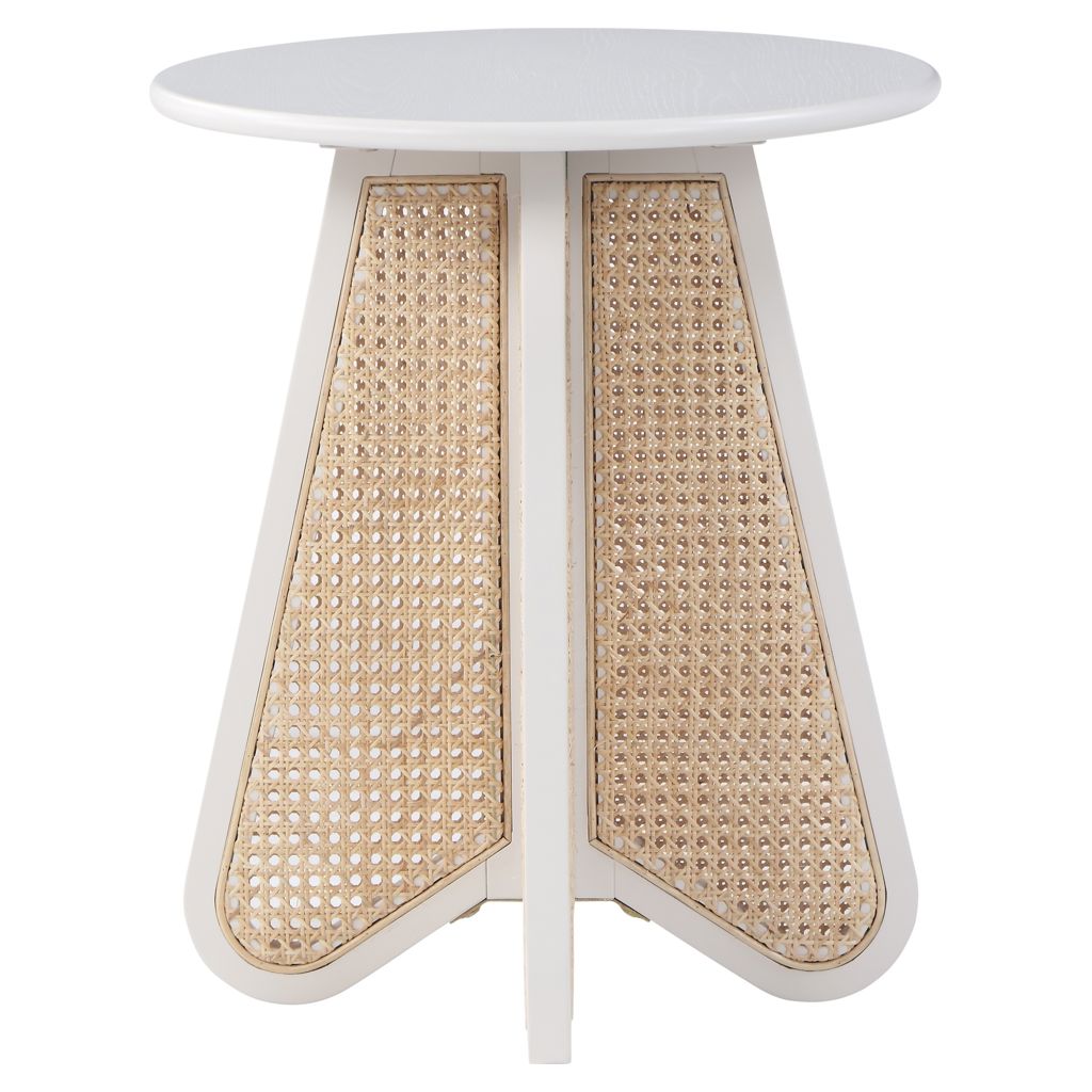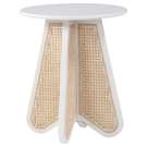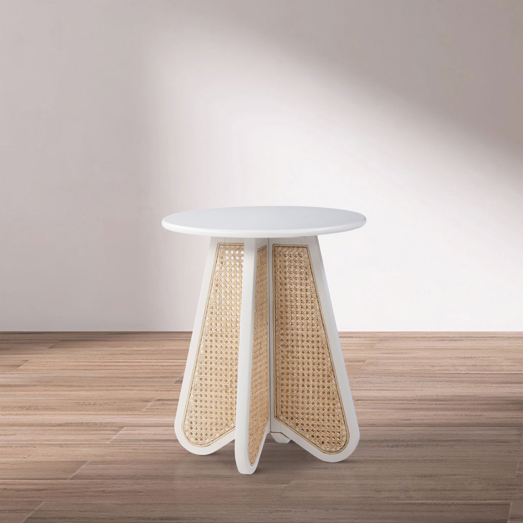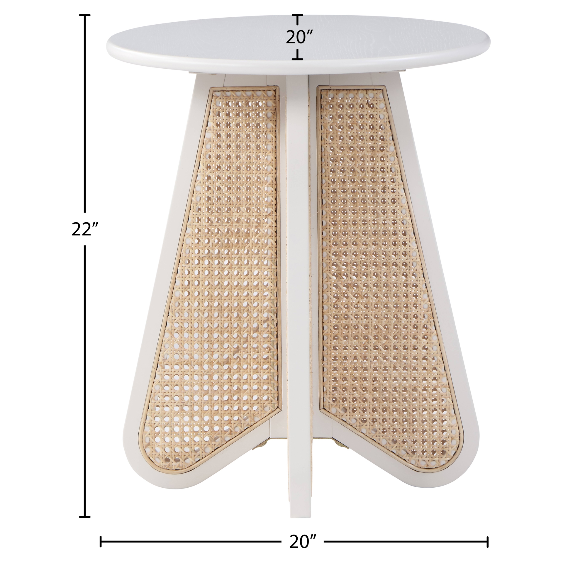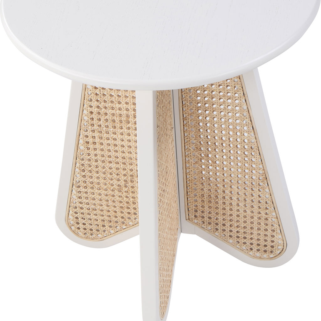 An expansive round oak veneer top gives you room for resting a drink or book or lamp to brighten the night. Construction with rubberwood and wood products gives this Butterfly table a resilient design, while its natural cane bottom adds a striking visual and instantly draws the eye.