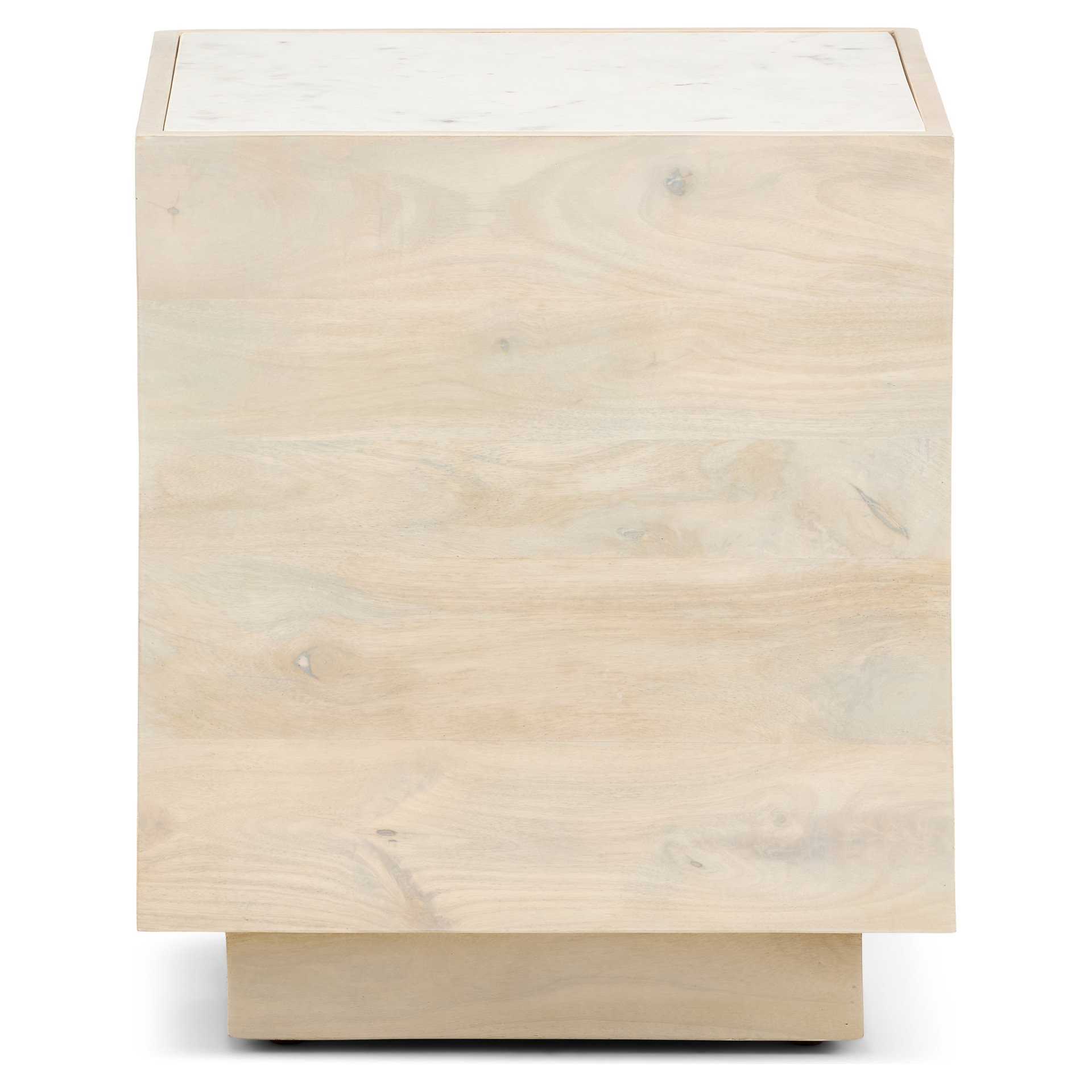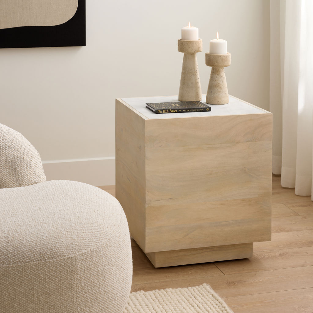This end table elegantly combines natural wood and a marble top to create a truly exceptional piece. The striking contrast between the warmth of the wood grain and the sophistication of white marble adds a touch of luxury to your interior.