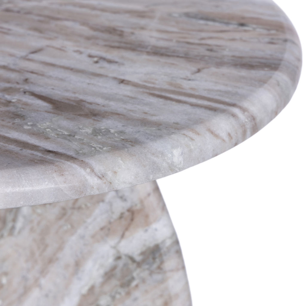 This table oozes sophistication from its wavy brown marble with light grey veining construction to its uniquely shaped base.