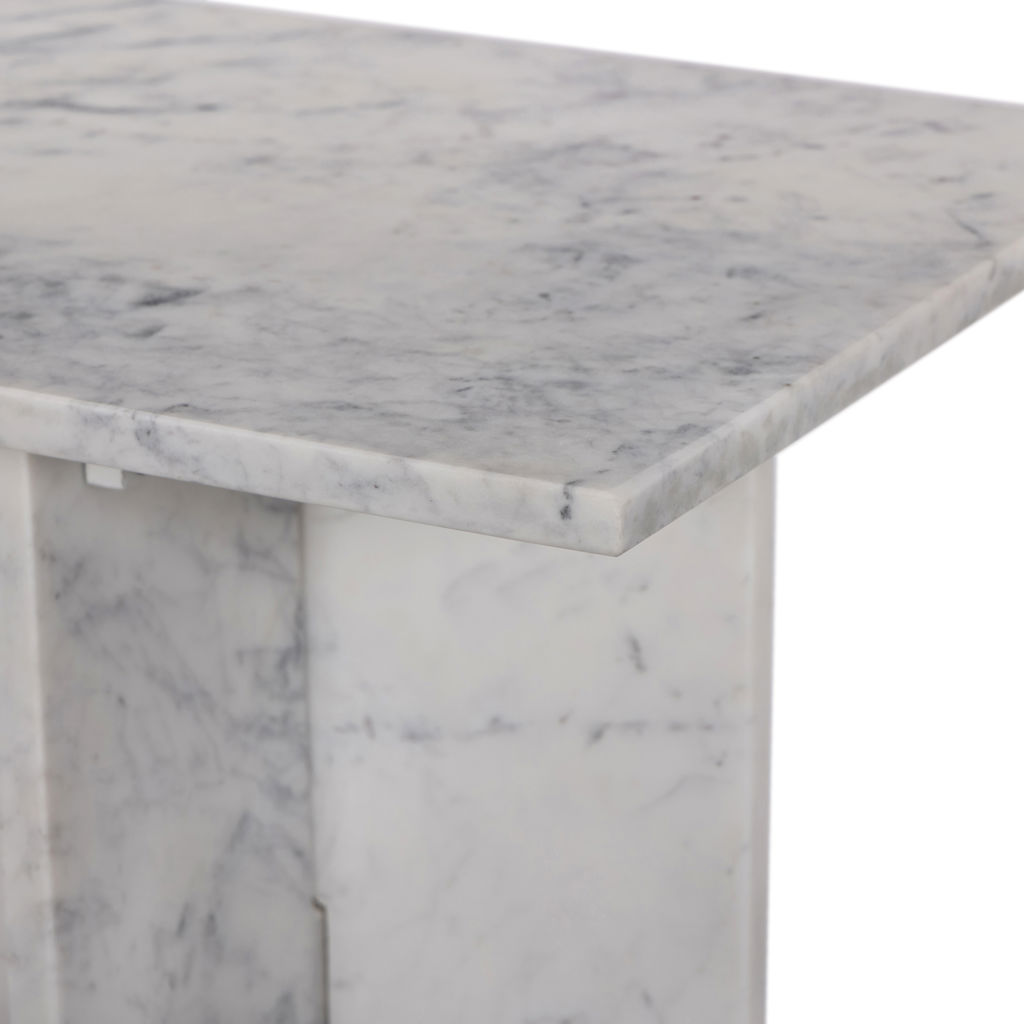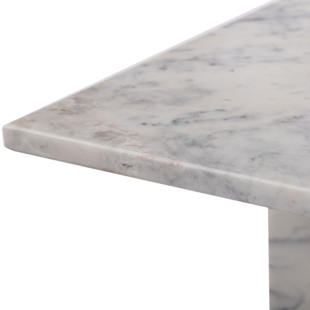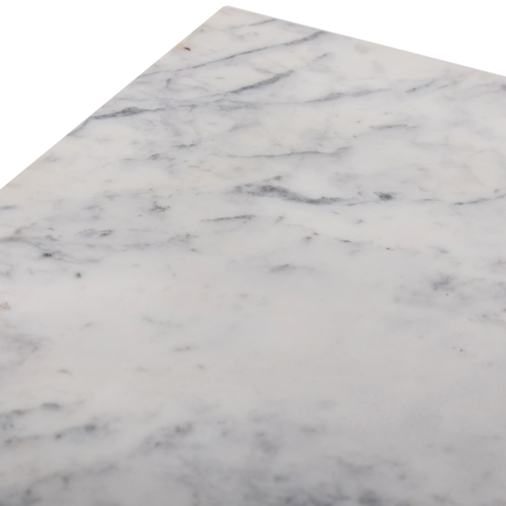 The white marble with light grey veining brings contemporary panache to your room, while the uniquely shaped base instantly draws the eye, making the table a certain showstopper.