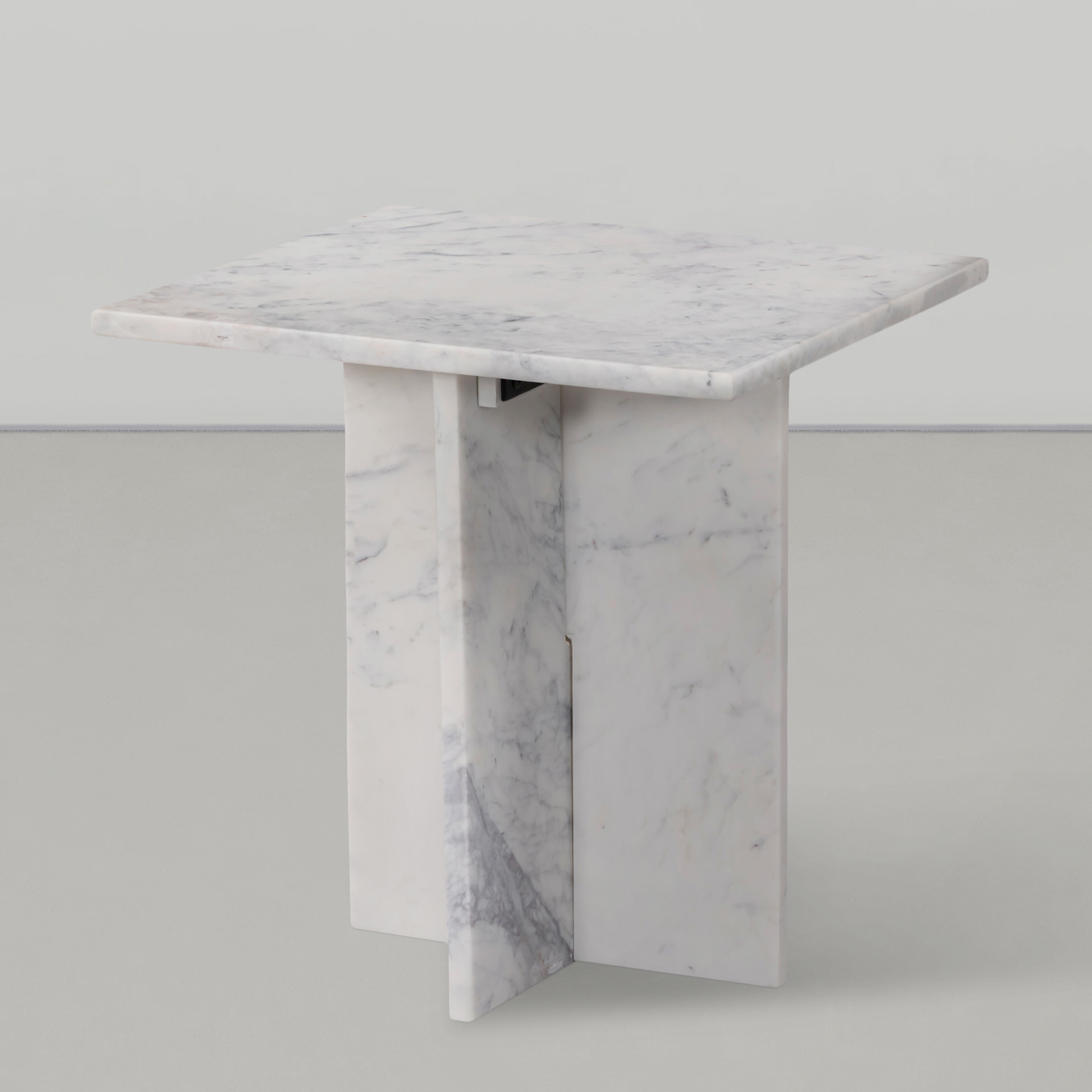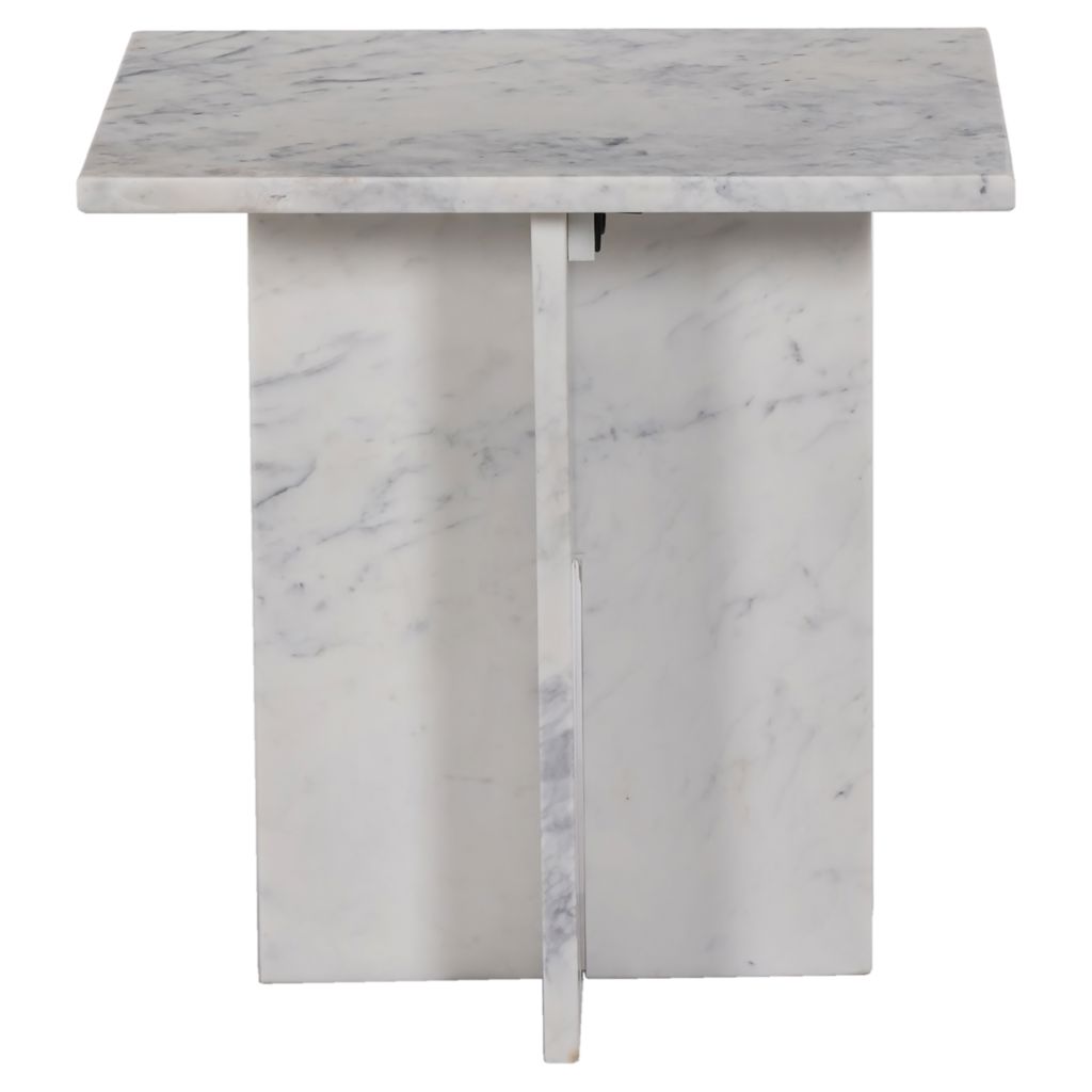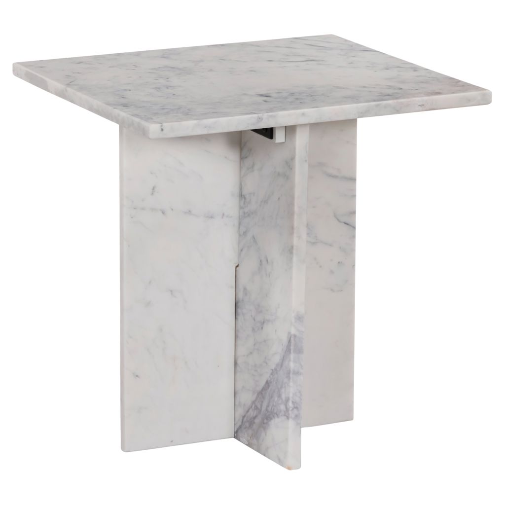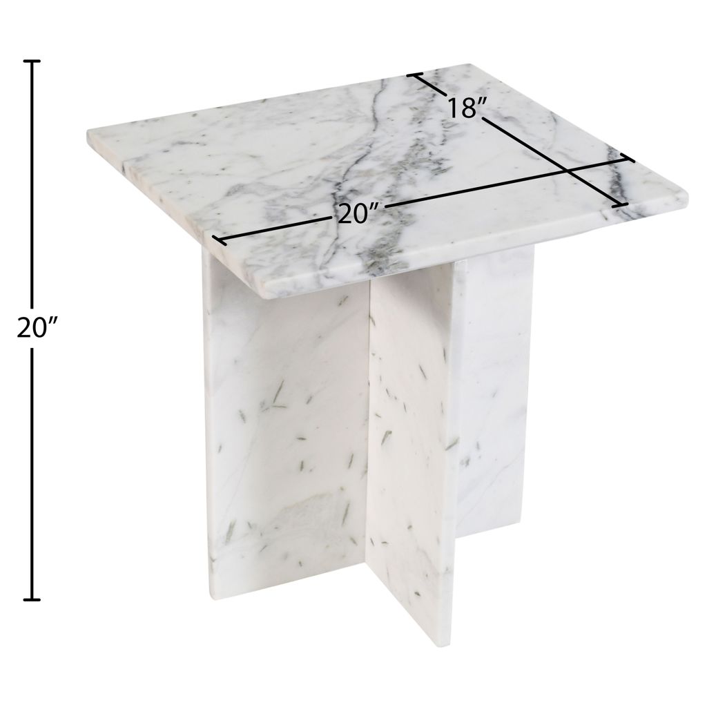 The white marble with light grey veining brings contemporary panache to your room, while the uniquely shaped base instantly draws the eye, making the table a certain showstopper.