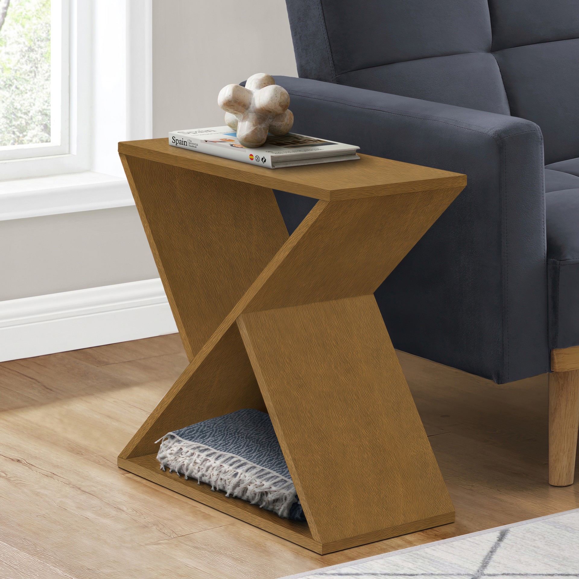 Place a small lamp, decorative object, or essentials on the spacious top for easy access. Set this versatile table next to a sofa or chair as an end or side table in your living room or bring it into a bedroom as a unique nightstand with modern styling.