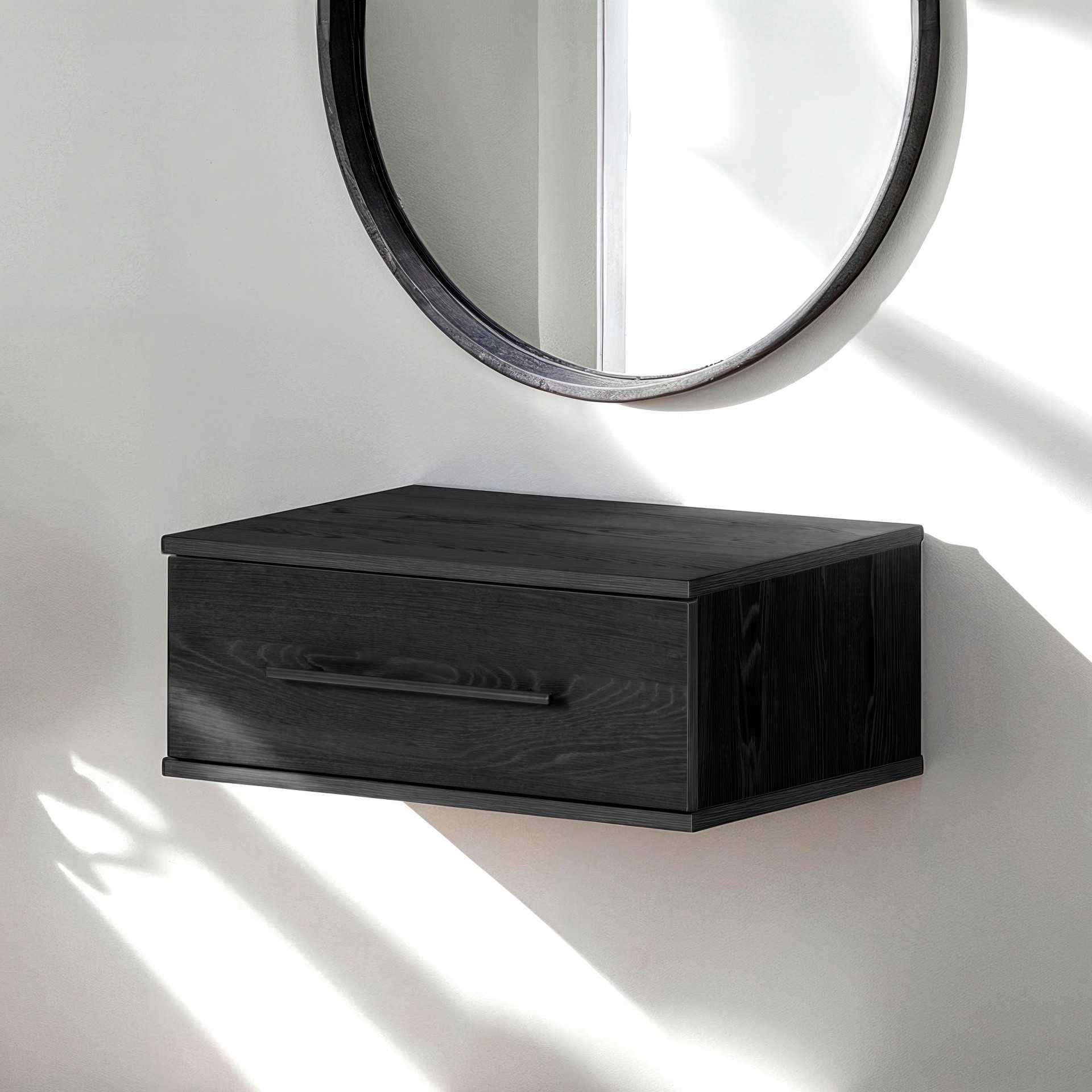 Can't figure out how to improve organization in your entryway? This wall-mounted side table could be the solution to all your problems! Compact, yet with a large drawer that can hold up to 25 lb, it multiplies storage in this highly frequented room of the house. Its subtle contemporary styling, accentuated by its horizontal metal handle, will blend well with any modern decor.