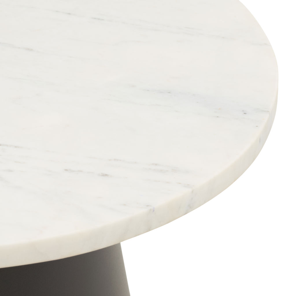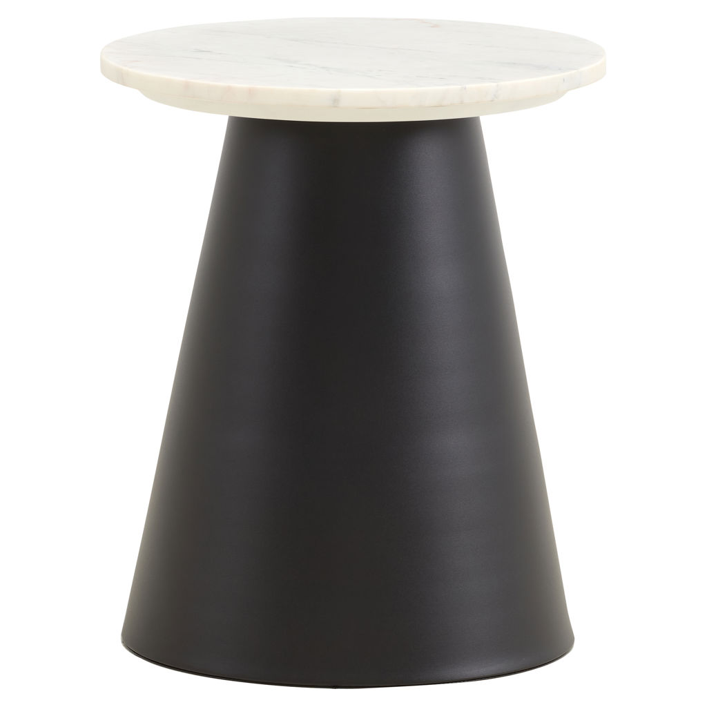 This remarkable end table features a round top in natural wood veneer paired with a bold matte black conical base, creating a sophisticated contrast and a sculptural presence beside your sofa or armchair.