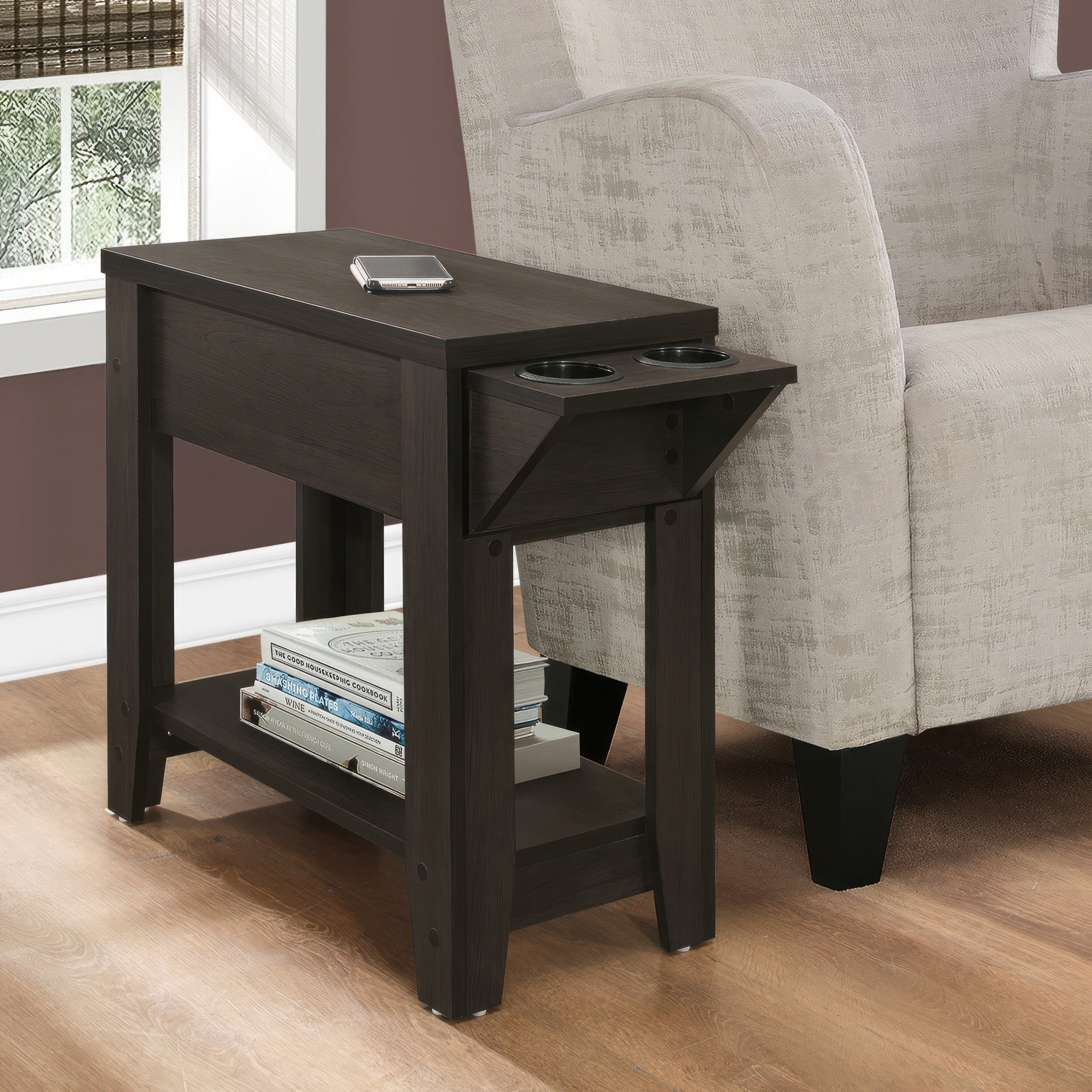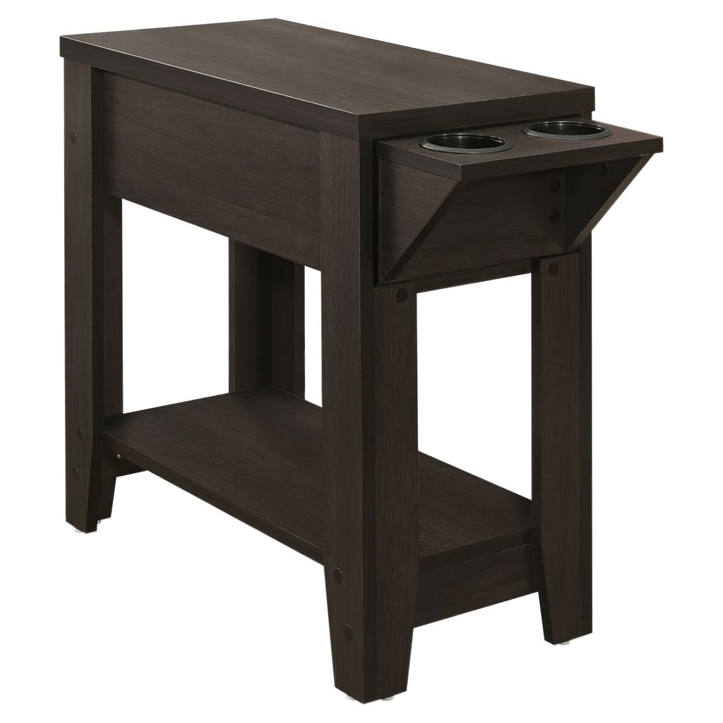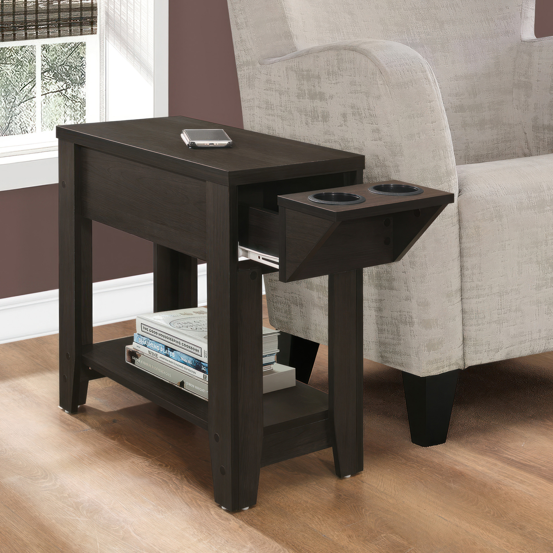 • Compact and contemporary side table in a cappuccino finish that fits any décor.