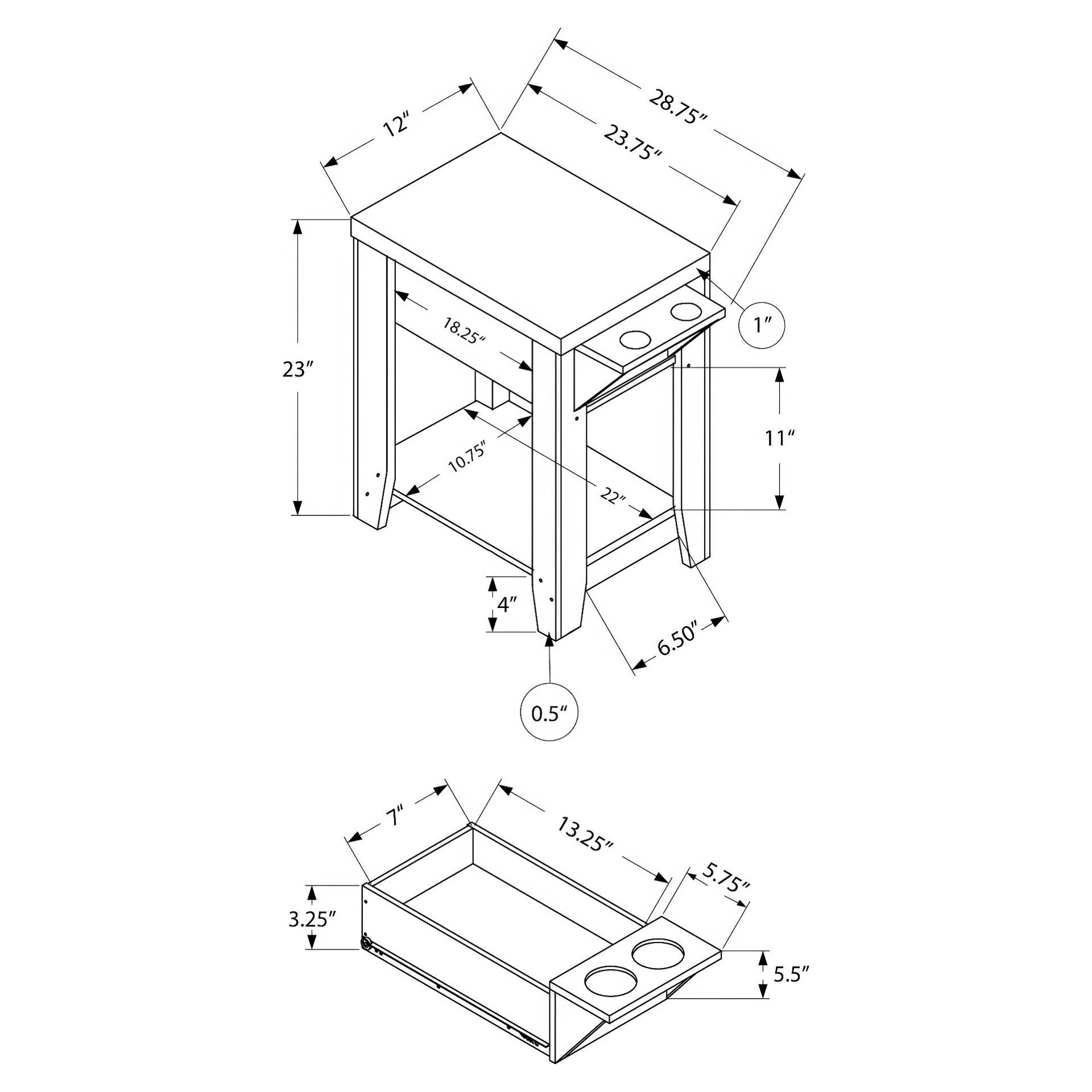 With a spacious top, perfect for placing a few books or a phone, a built-in double cup holder and a hidden drawer perfect for storing remotes or anything else you need at hand.